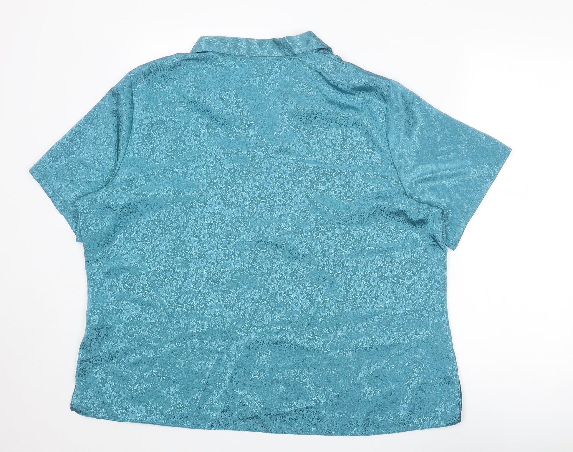 Bonmarché Womens Blue Floral Polyester Basic Button-Up Size 24 Collared