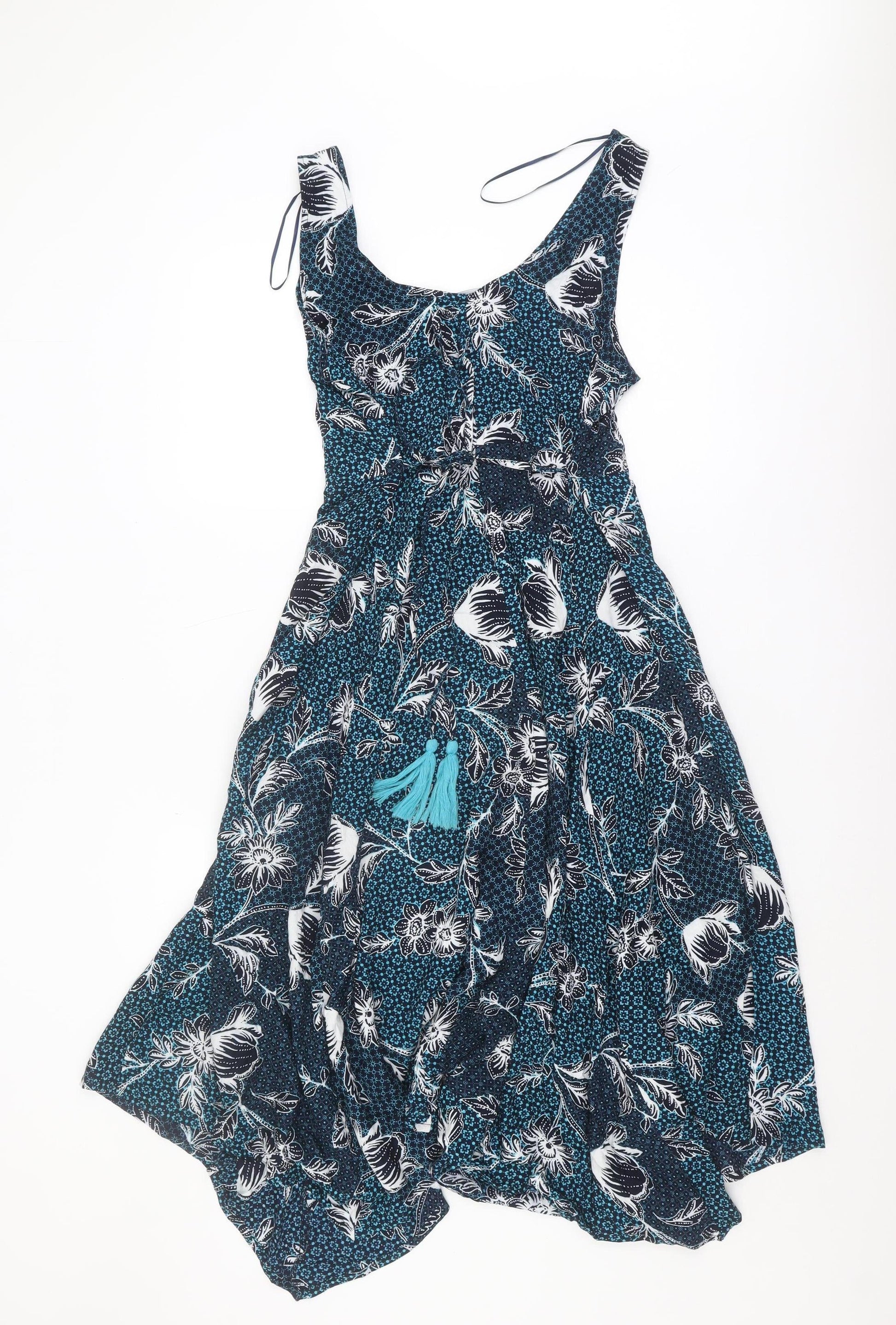 Bonmarché Women's Blue Floral Tasselled Sleeveless Dress