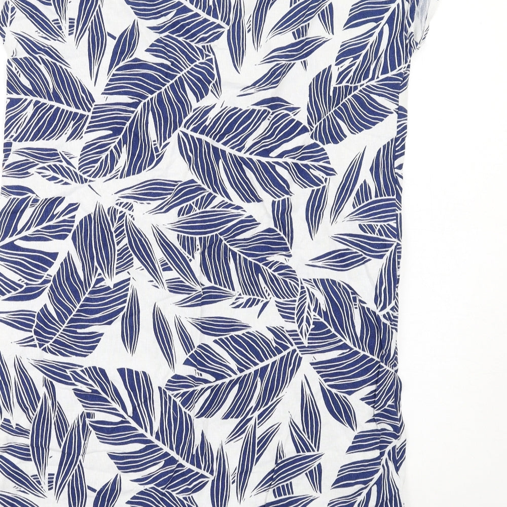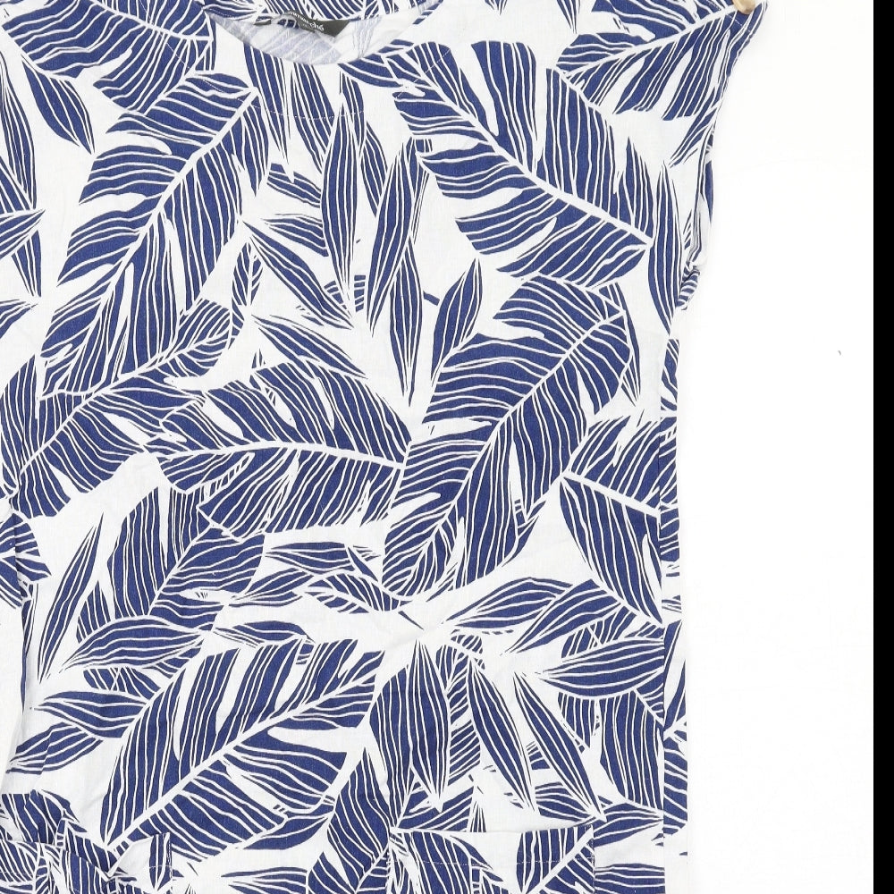 Bonmarché Womens Blue Geometric Linen Shift Size 12 Round Neck Pullover - Leaf pattern