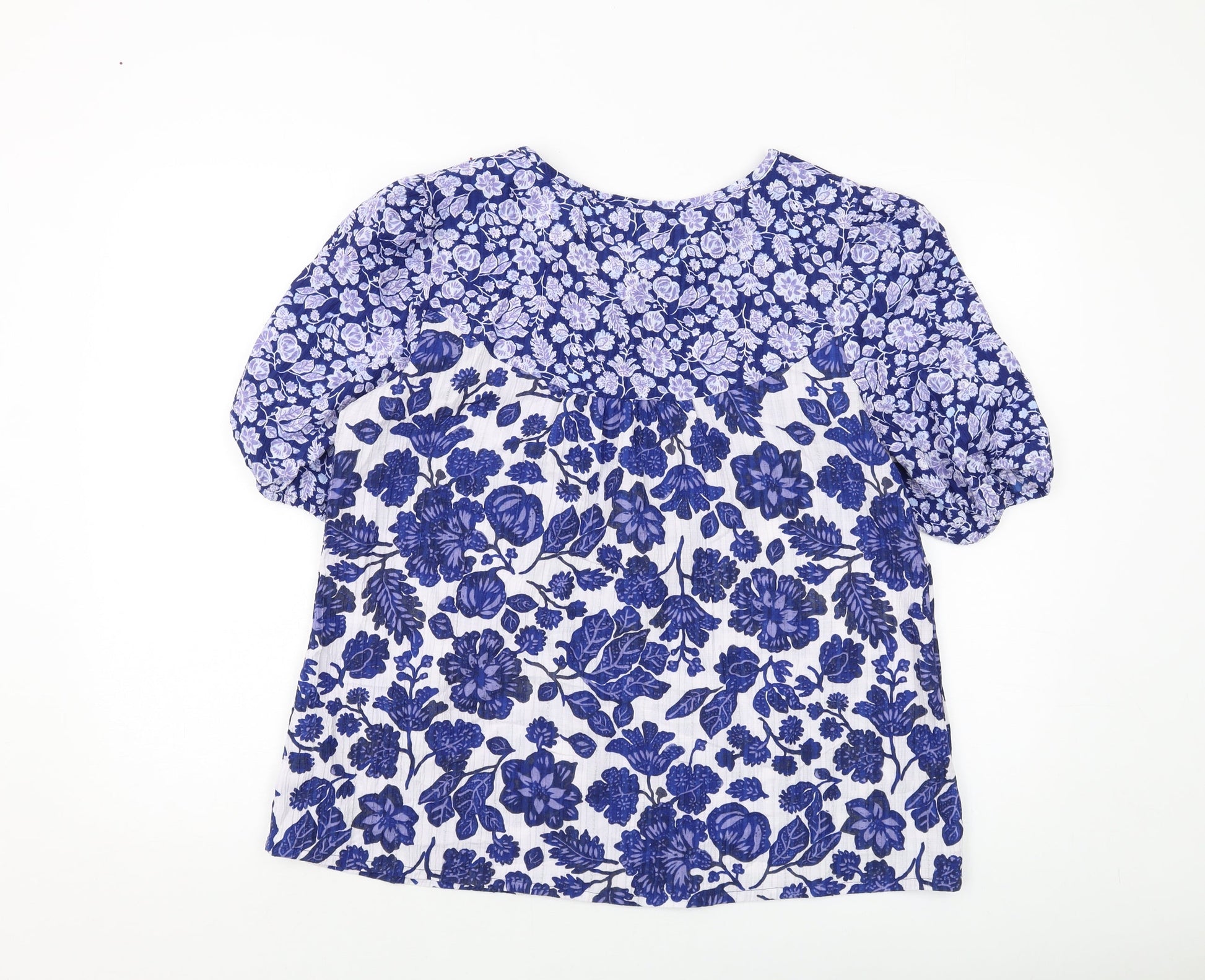 Bonmarché Womens Blue Geometric Polyester Basic Blouse Size 14 Round Neck