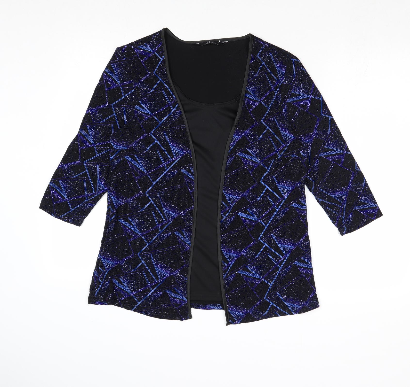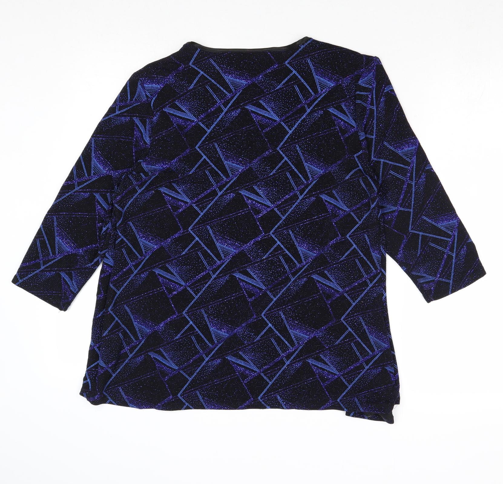 Bonmarché Womens Blue Geometric Polyester Basic Blouse Size 14 Scoop Neck