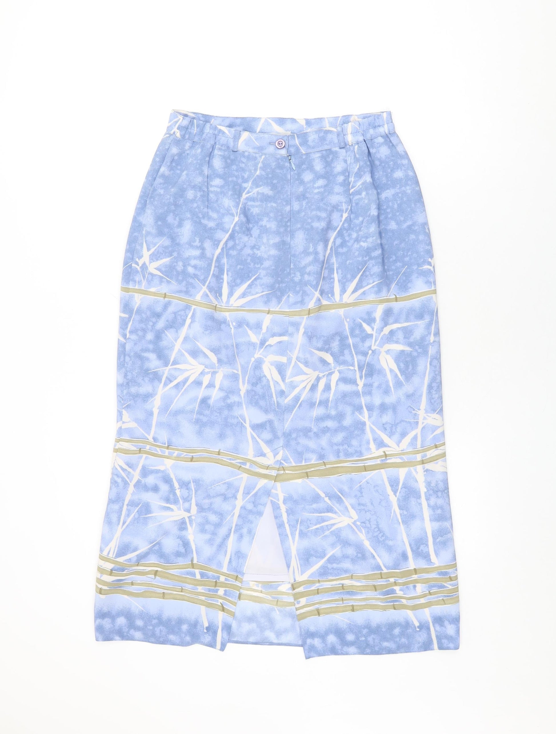 Bonmarché Womens Blue Geometric Polyester Flare Skirt Size 14 Zip