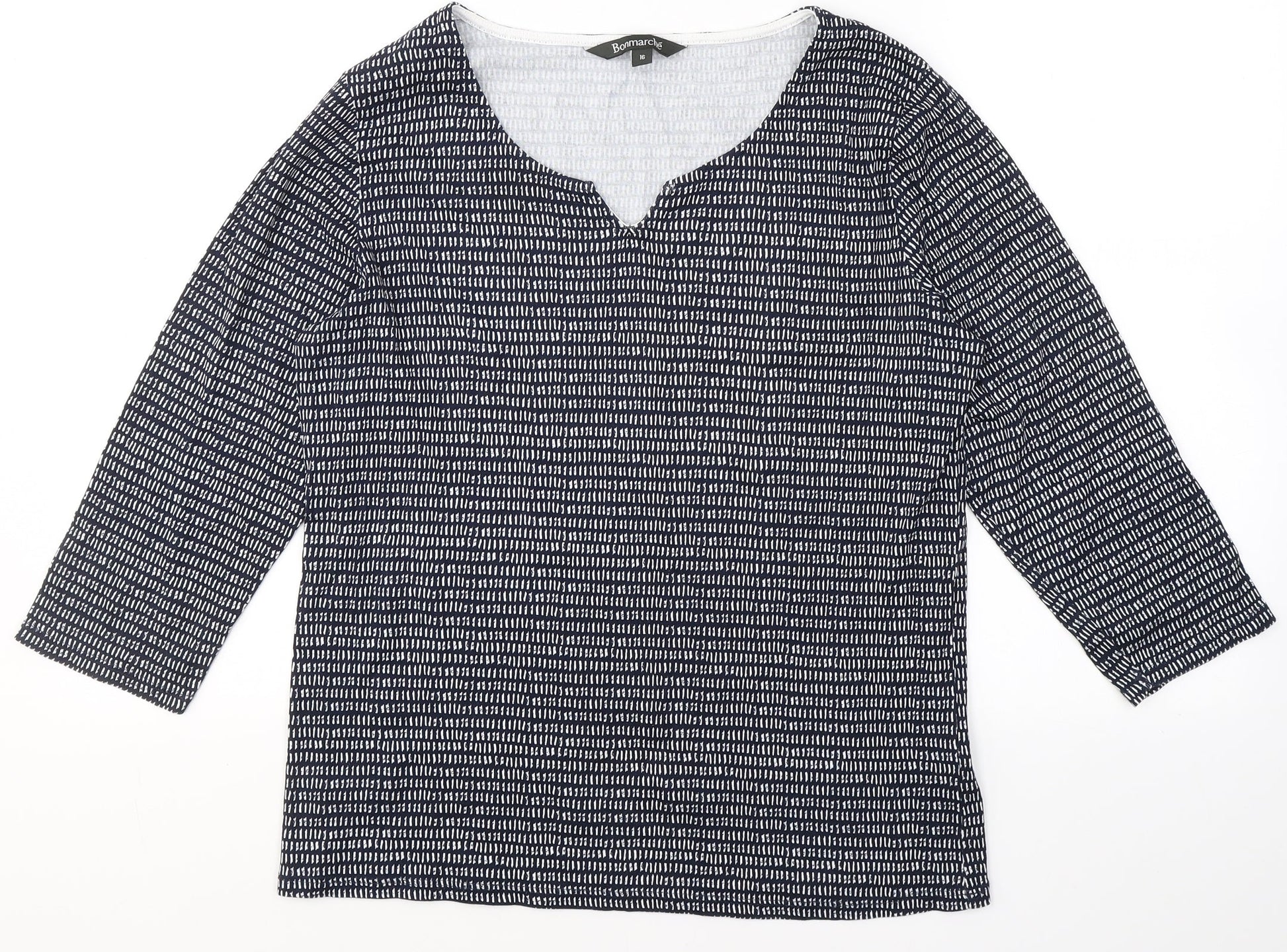 Bonmarché Womens Blue Polka Dot Cotton Basic Blouse Size 16 V-Neck