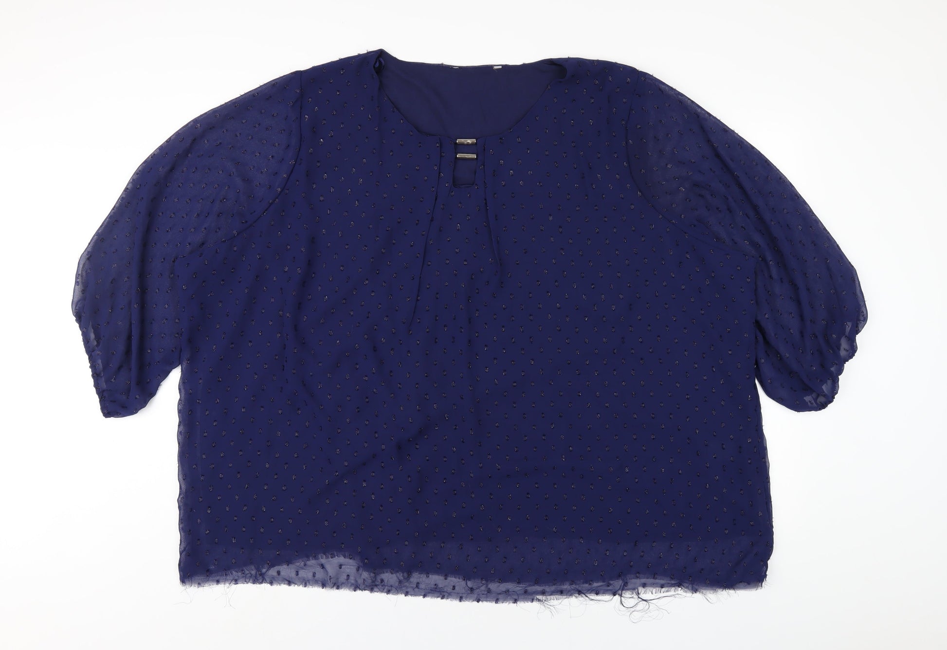 Bonmarché Womens Blue Polyester Basic Blouse Size 26 Round Neck
