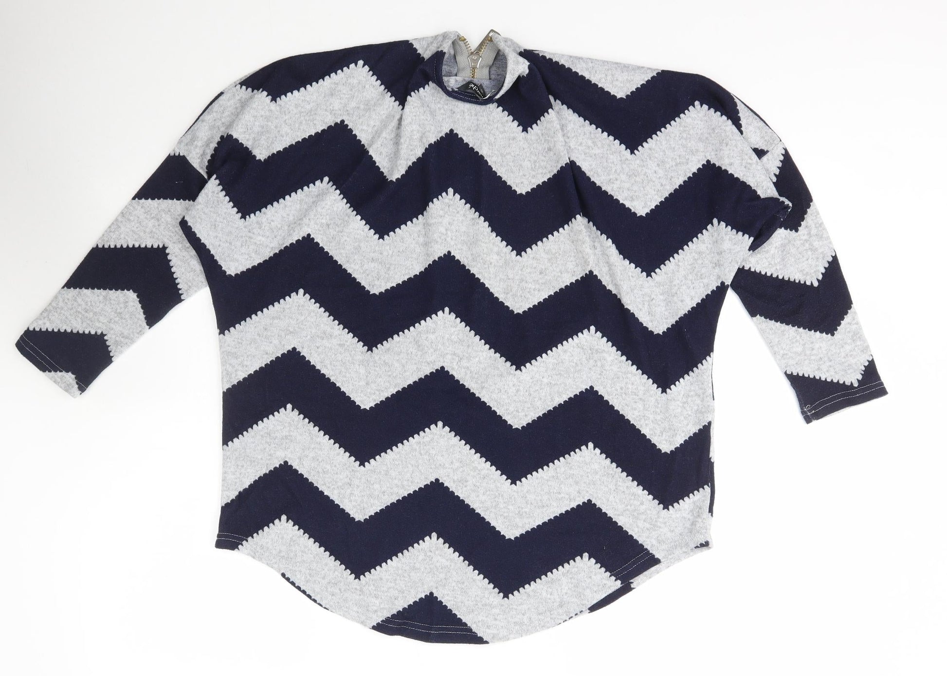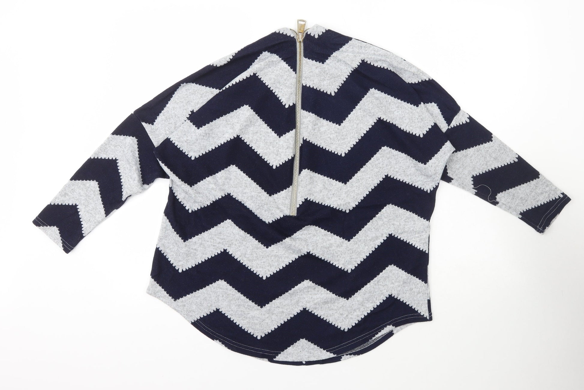 Bonmarché Womens Blue Striped Polyester Full Zip Sweatshirt Size XS Zip