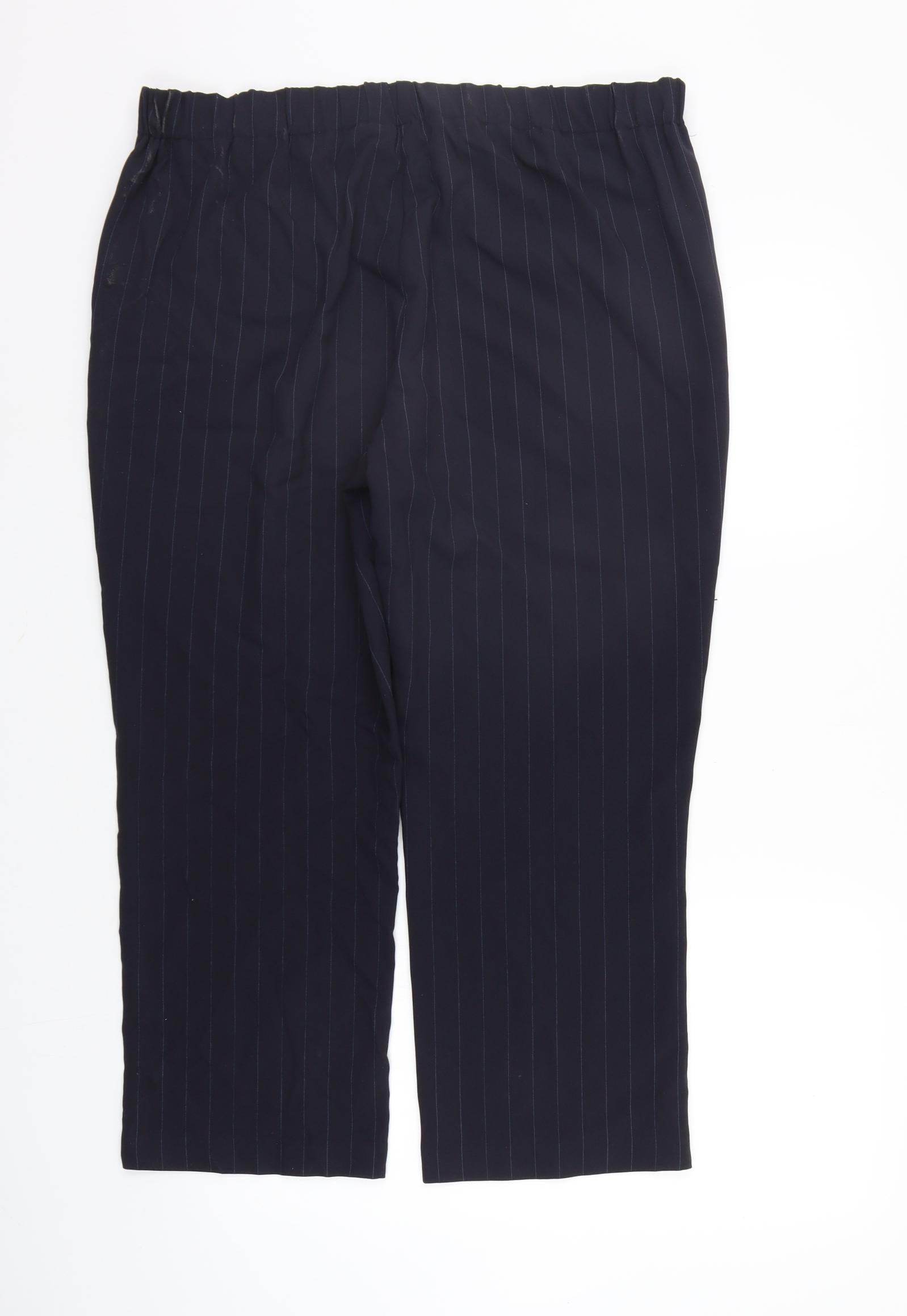 BONMARCHE Womens Blue Striped Trousers Size 16 L24 in - Elastic Waist Band