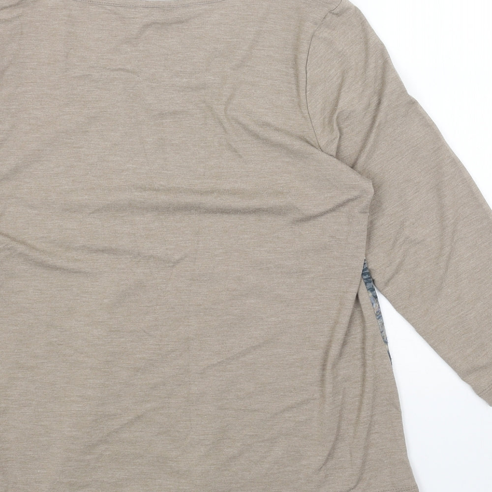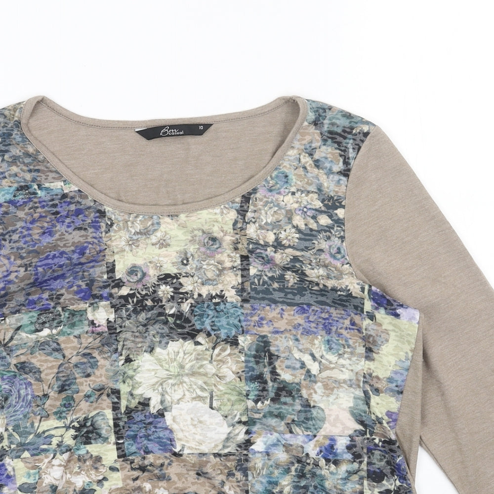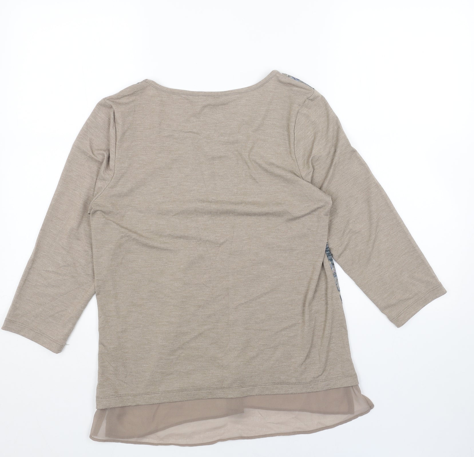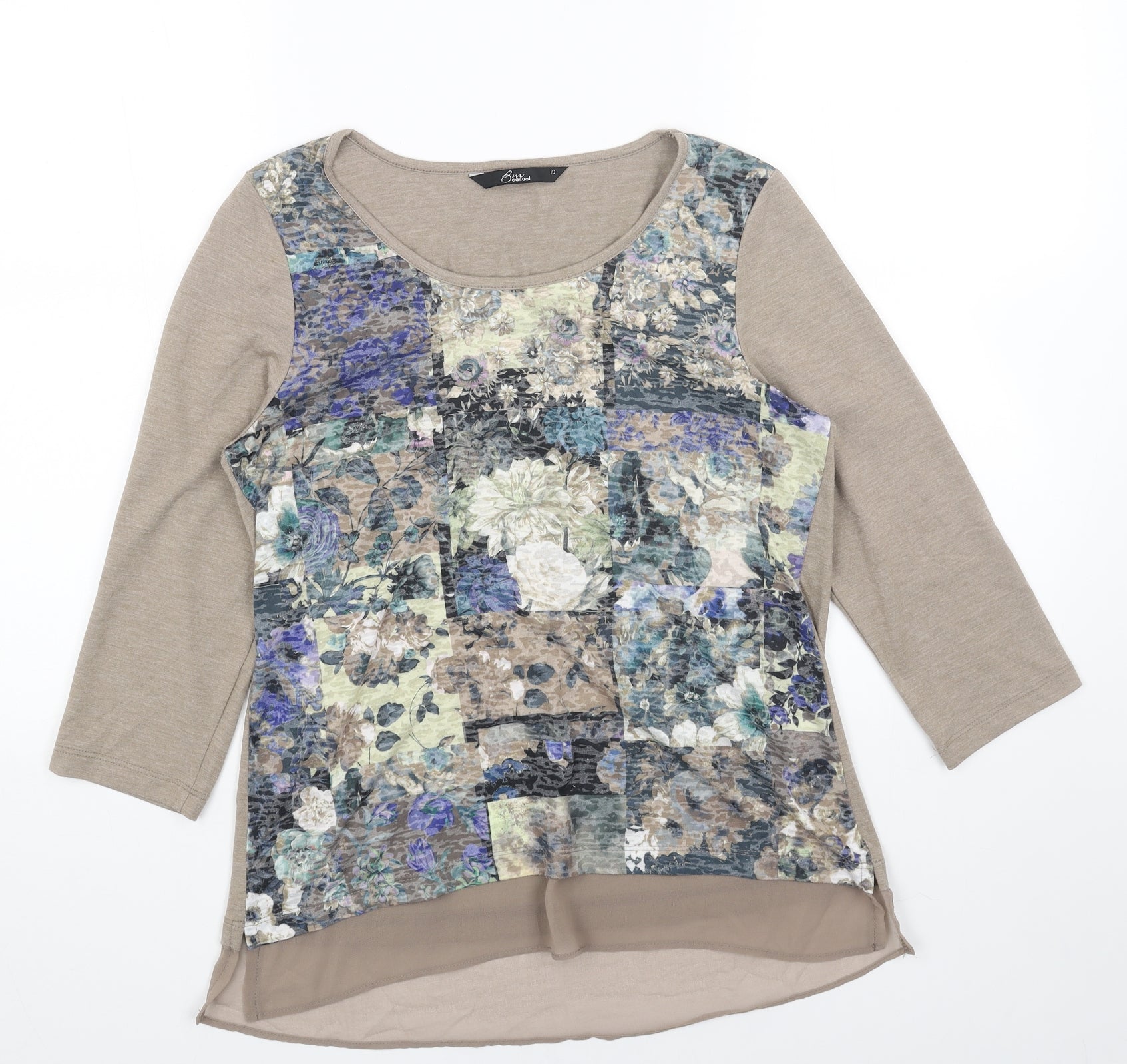 Bonmarché Womens Brown Geometric Cotton Basic Blouse Size 10 Round Neck