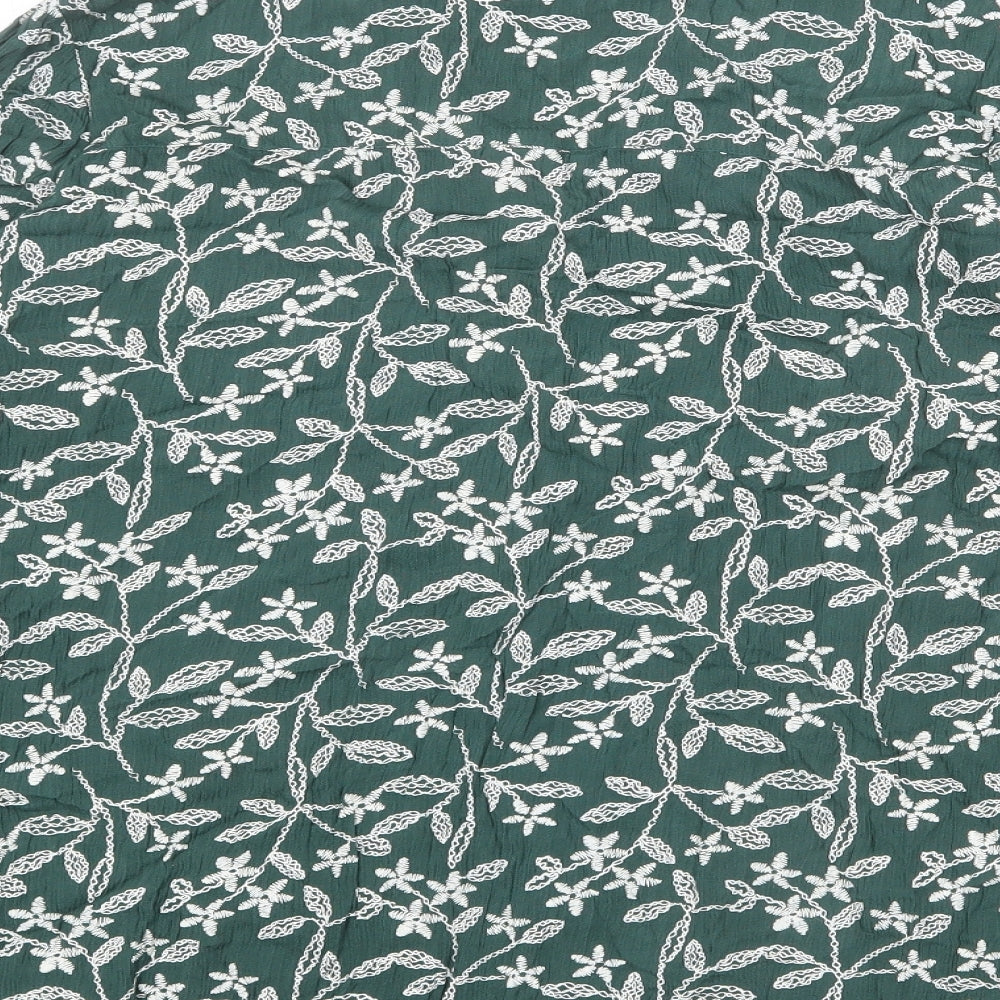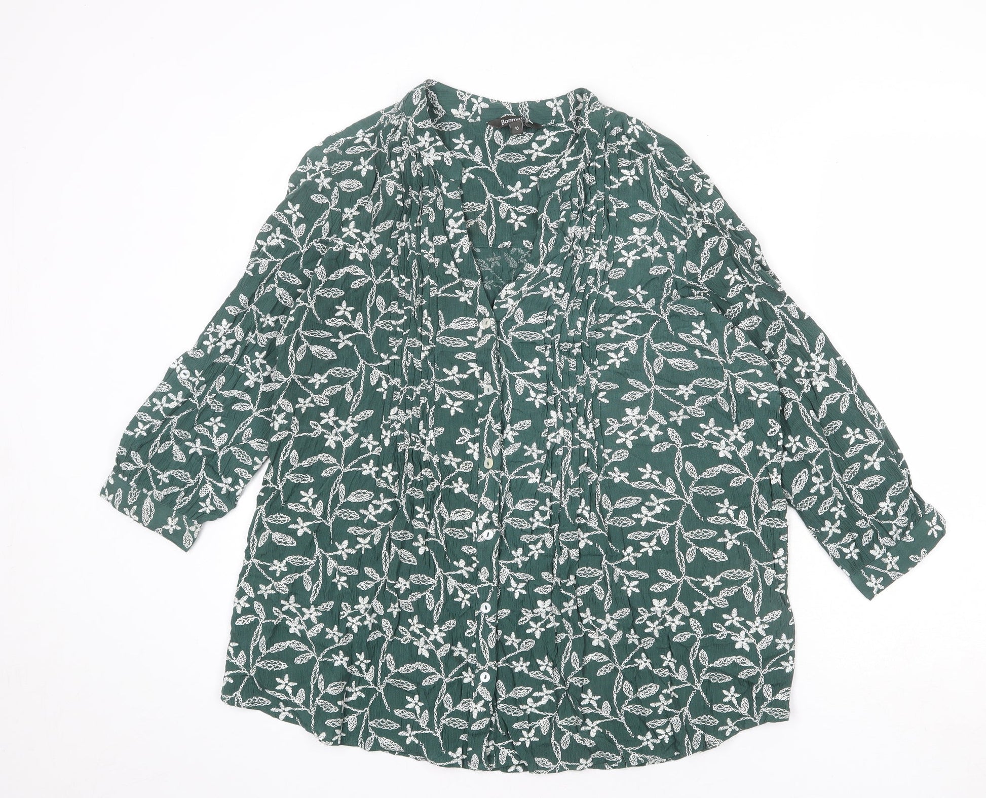 Bonmarché Womens Green Floral Viscose Basic Blouse Size 10 V-Neck - Button-Up