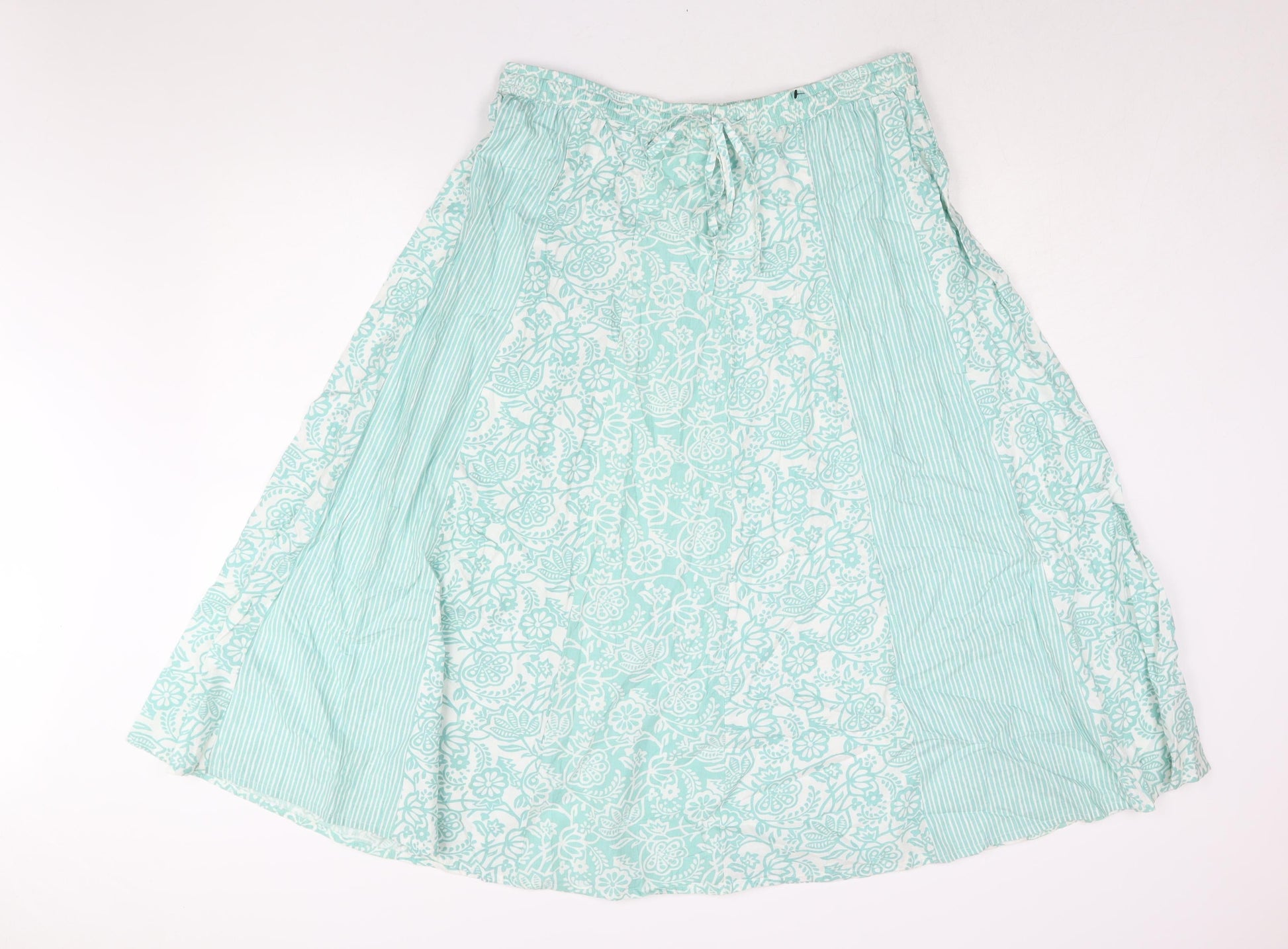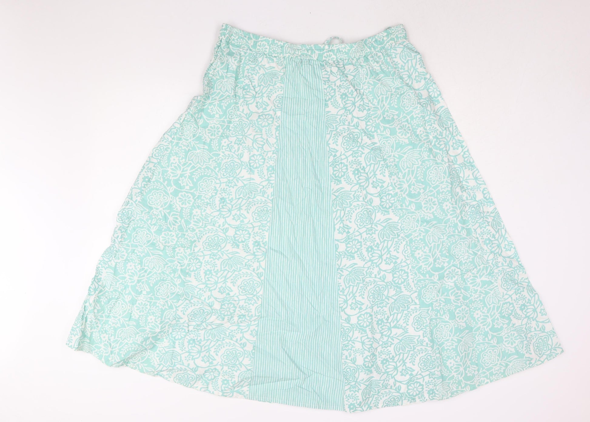 Bonmarché Womens Green Geometric Cotton Flare Skirt Size 16 Drawstring - Panelled