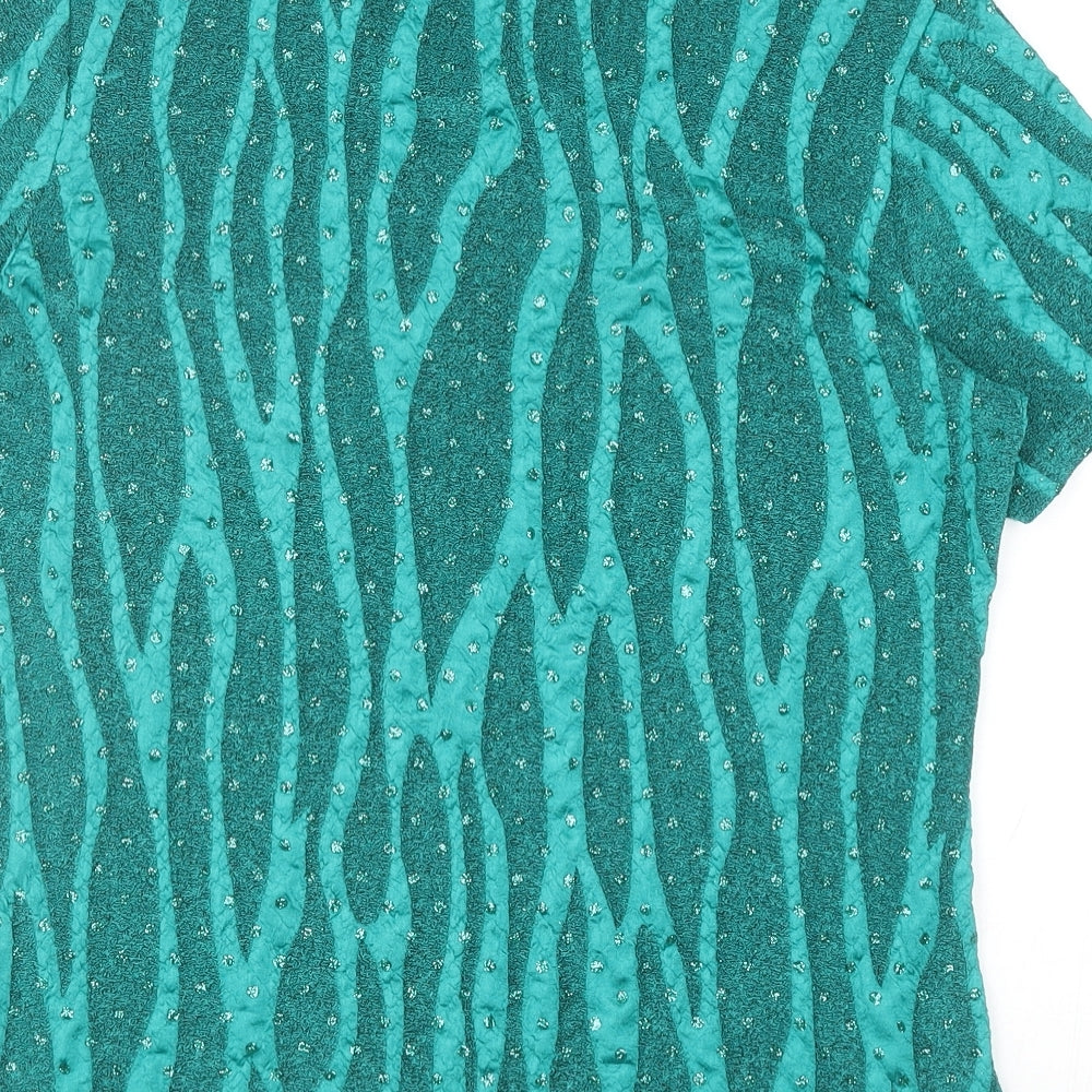 Bonmarché Womens Green Geometric Nylon Basic Blouse Size S Round Neck - Polka Dot