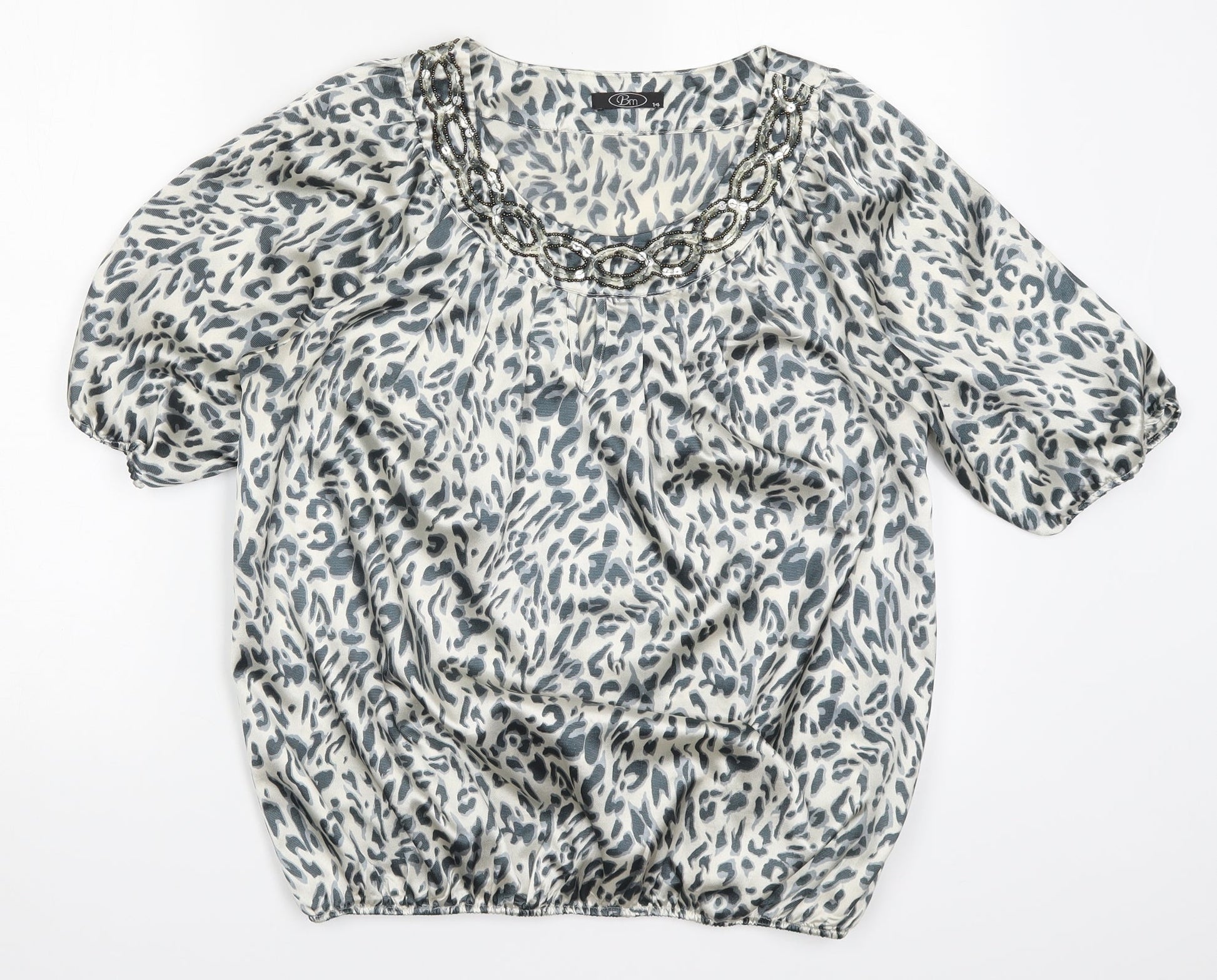 Bonmarché Womens Grey Animal Print Basic Blouse Size 14