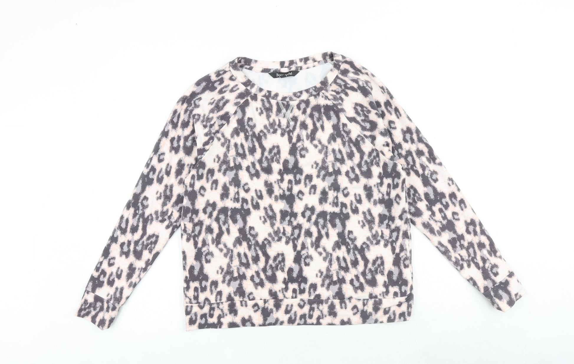 Bonmarché Womens Grey Animal Print Cotton Pullover Sweatshirt Size 12 Pullover - Leopard Pattern
