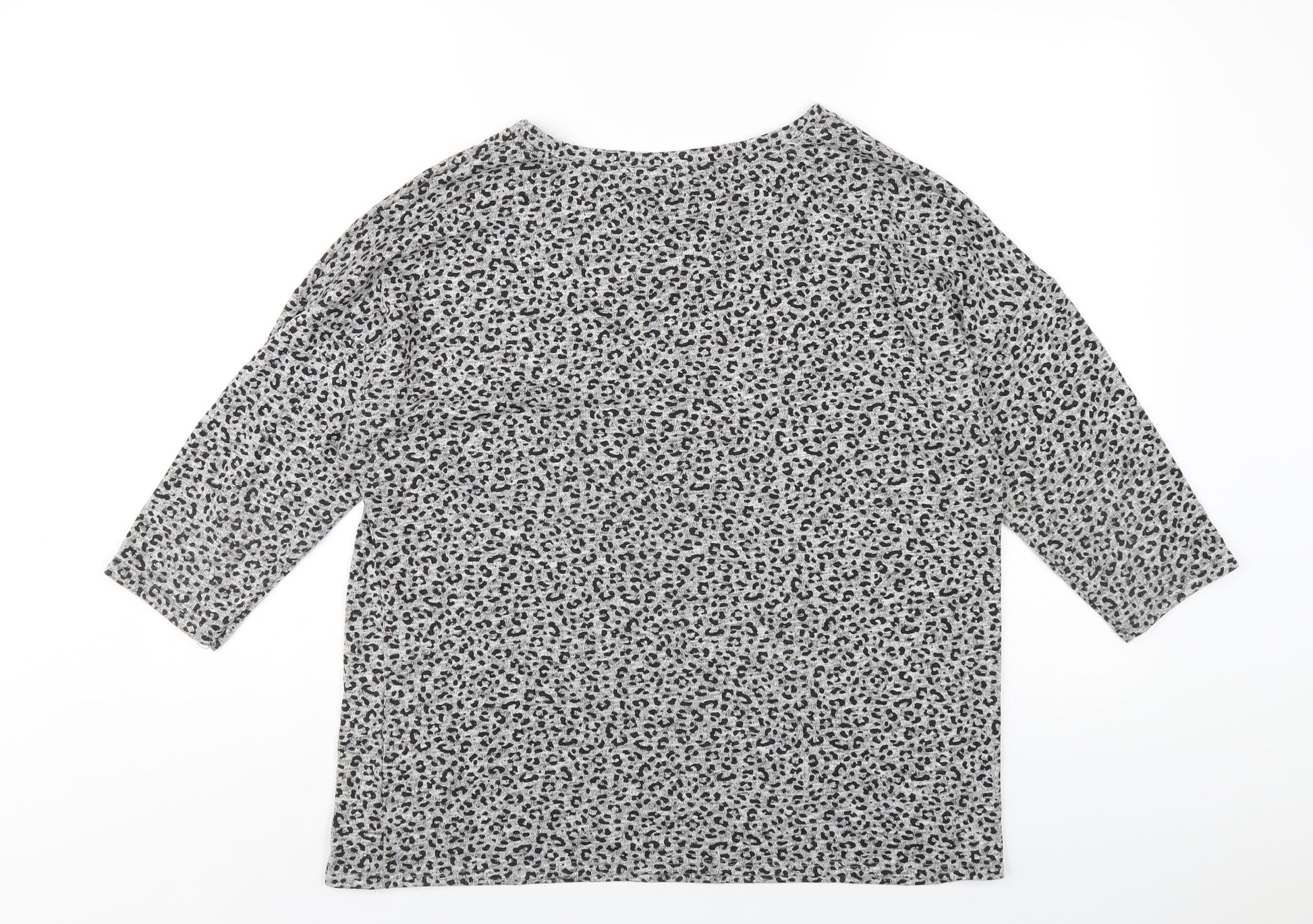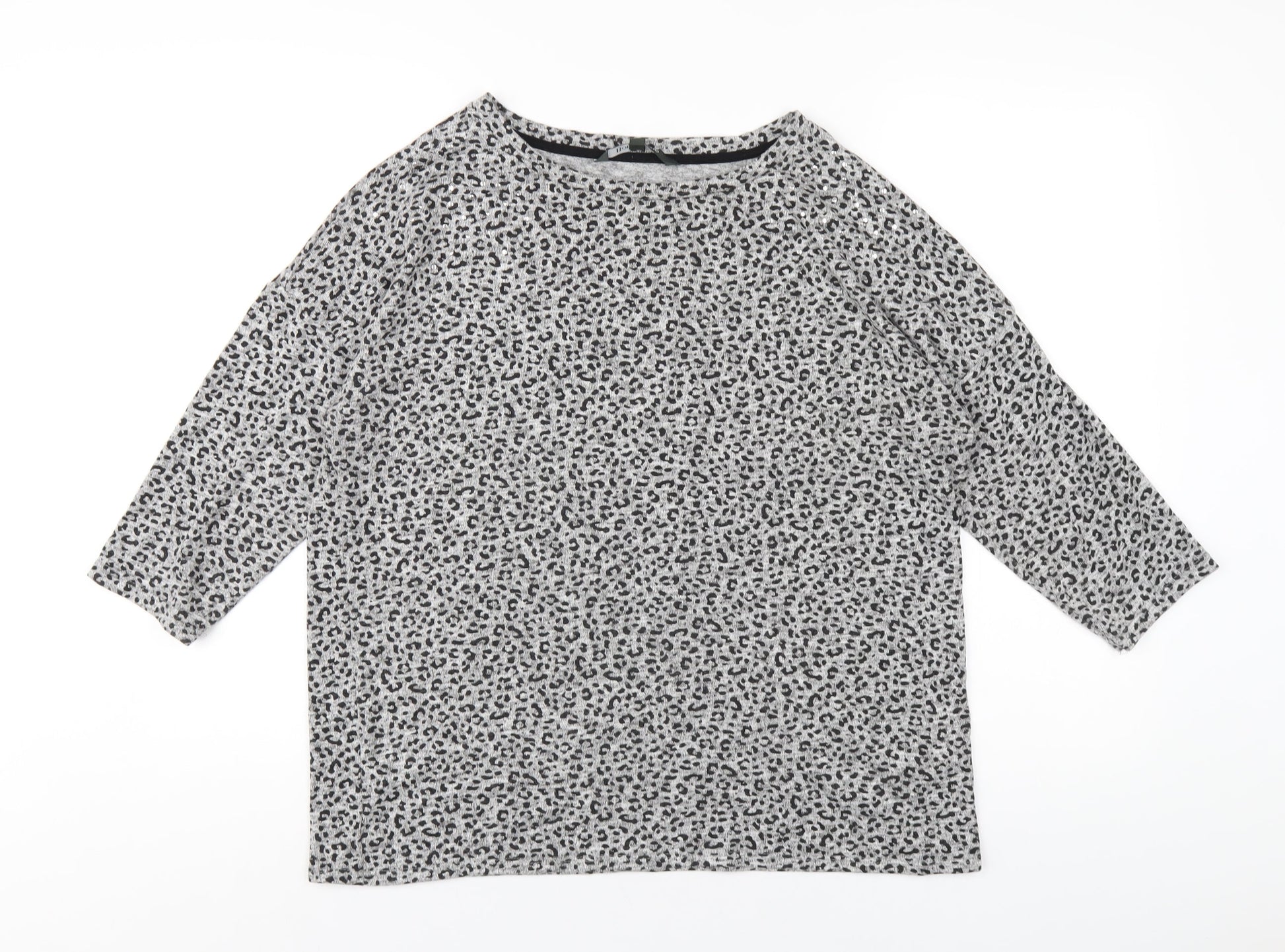 Bonmarché Womens Grey Animal Print Viscose Basic T-Shirt Size 14 Round Neck