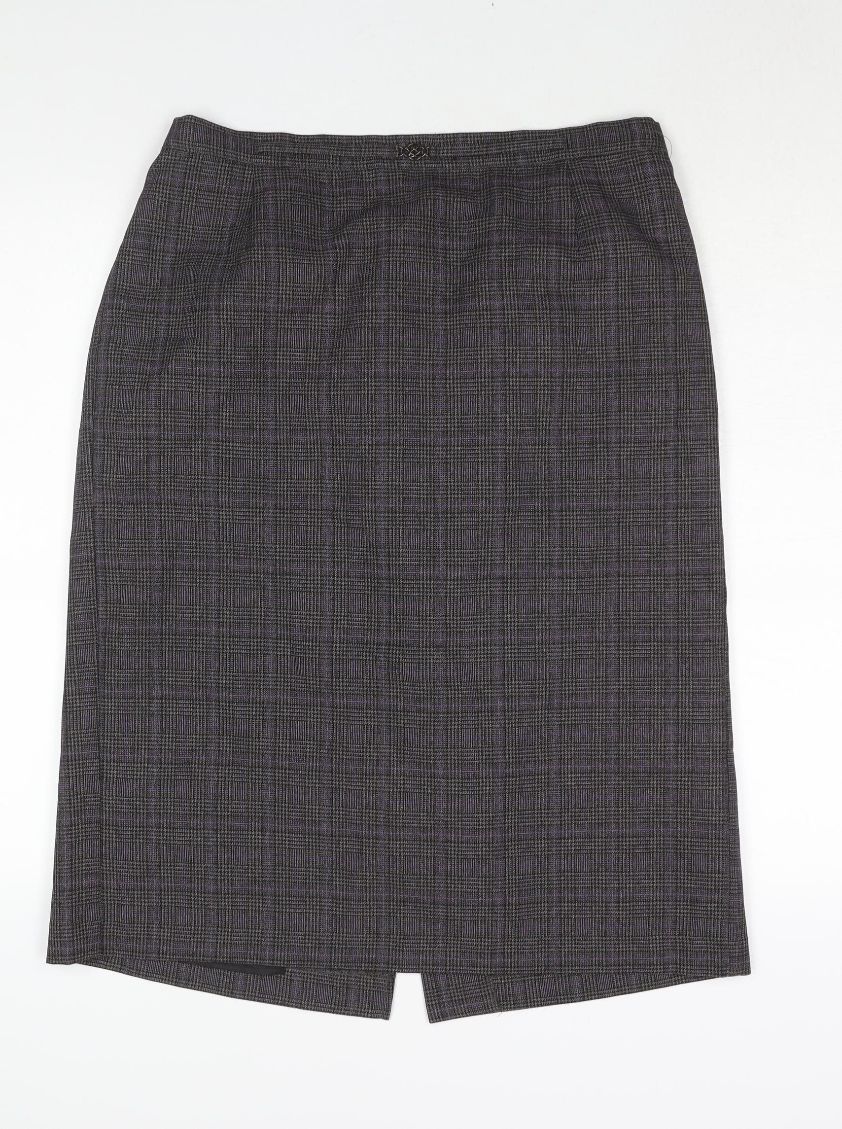Bonmarché Womens Grey Check Polyester Straight & Pencil Skirt Size 14 - Belt Buckle Detail Elasticated Waist