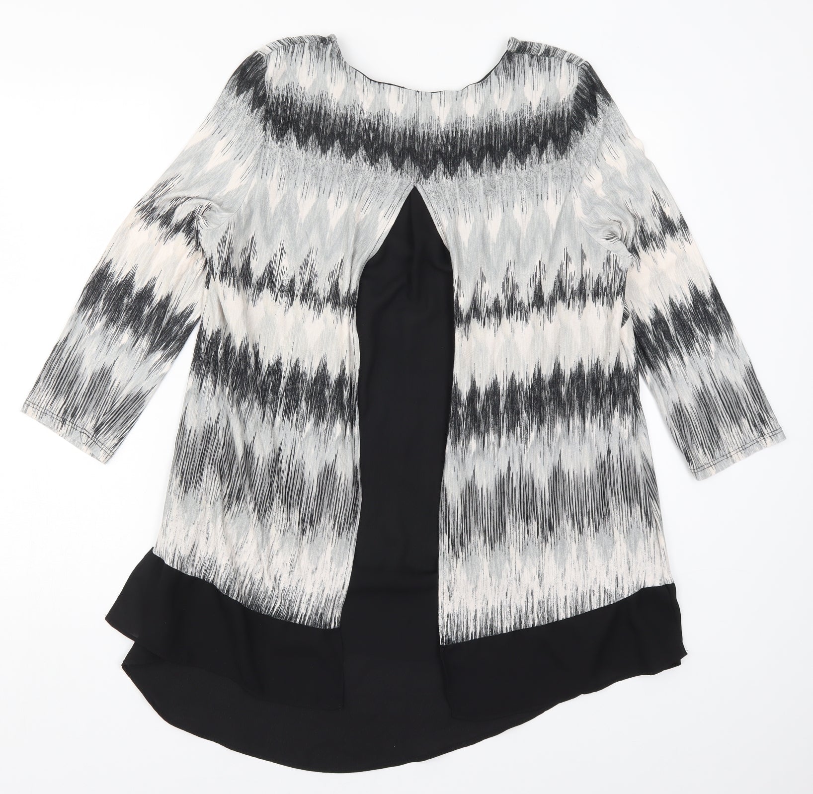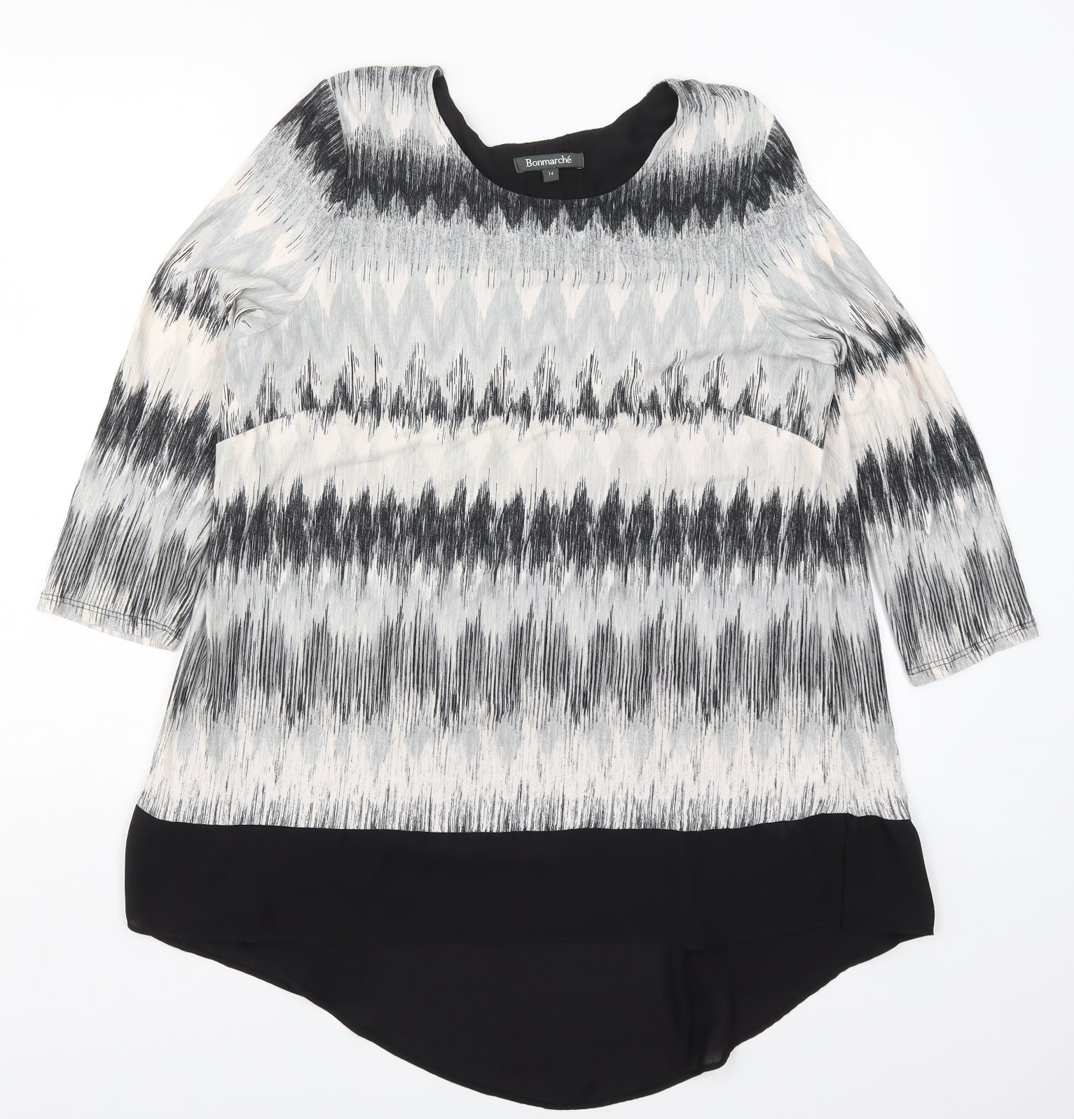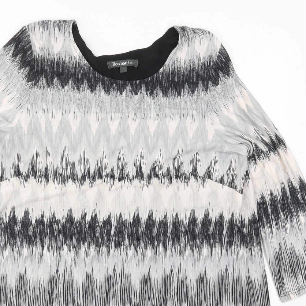 Bonmarché Womens Grey Geometric Basic T-Shirt Size 14 - Zig Zag