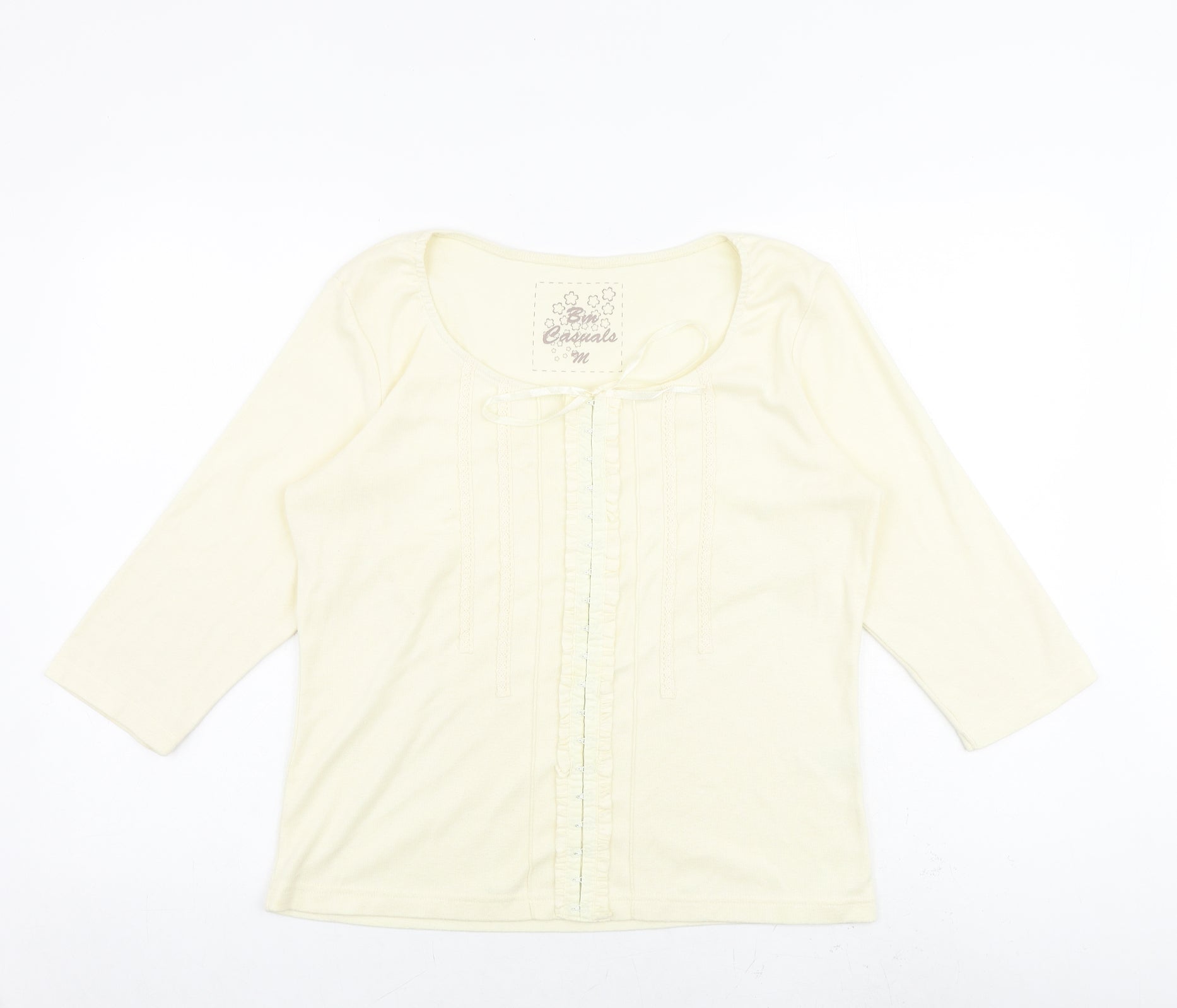 Bonmarché Womens Ivory Polyester Basic T-Shirt Size M Round Neck