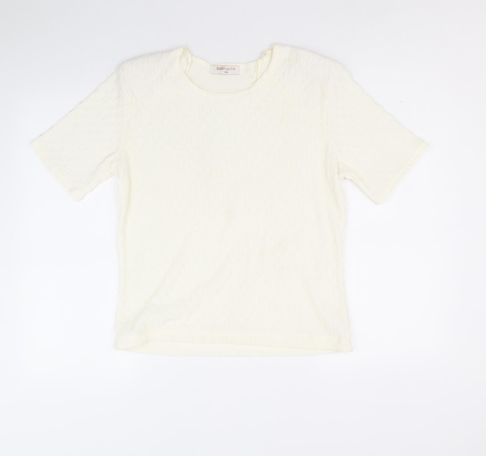 Bonmarché Womens Ivory Polyester Basic T-Shirt Size S Scoop Neck - Size S-M