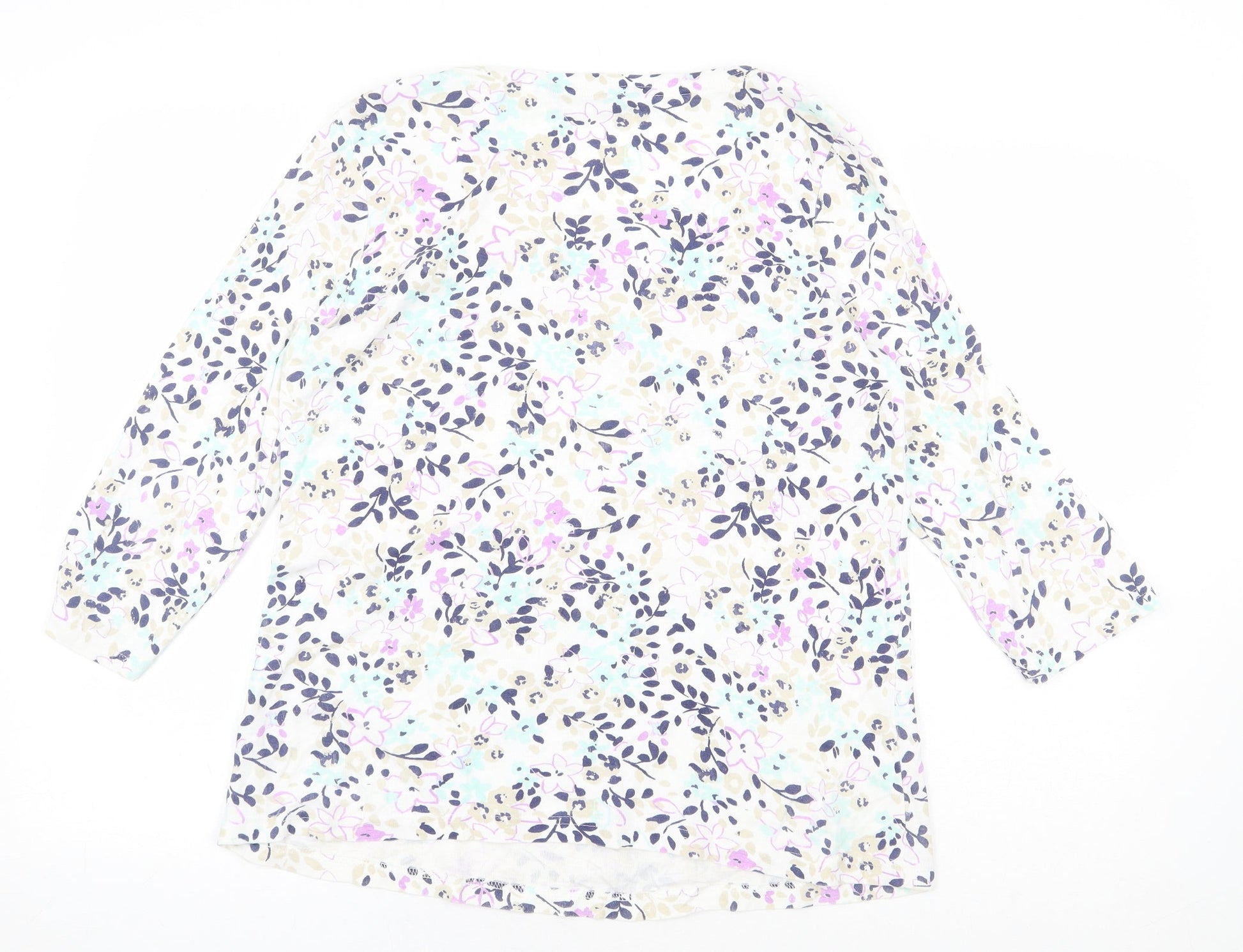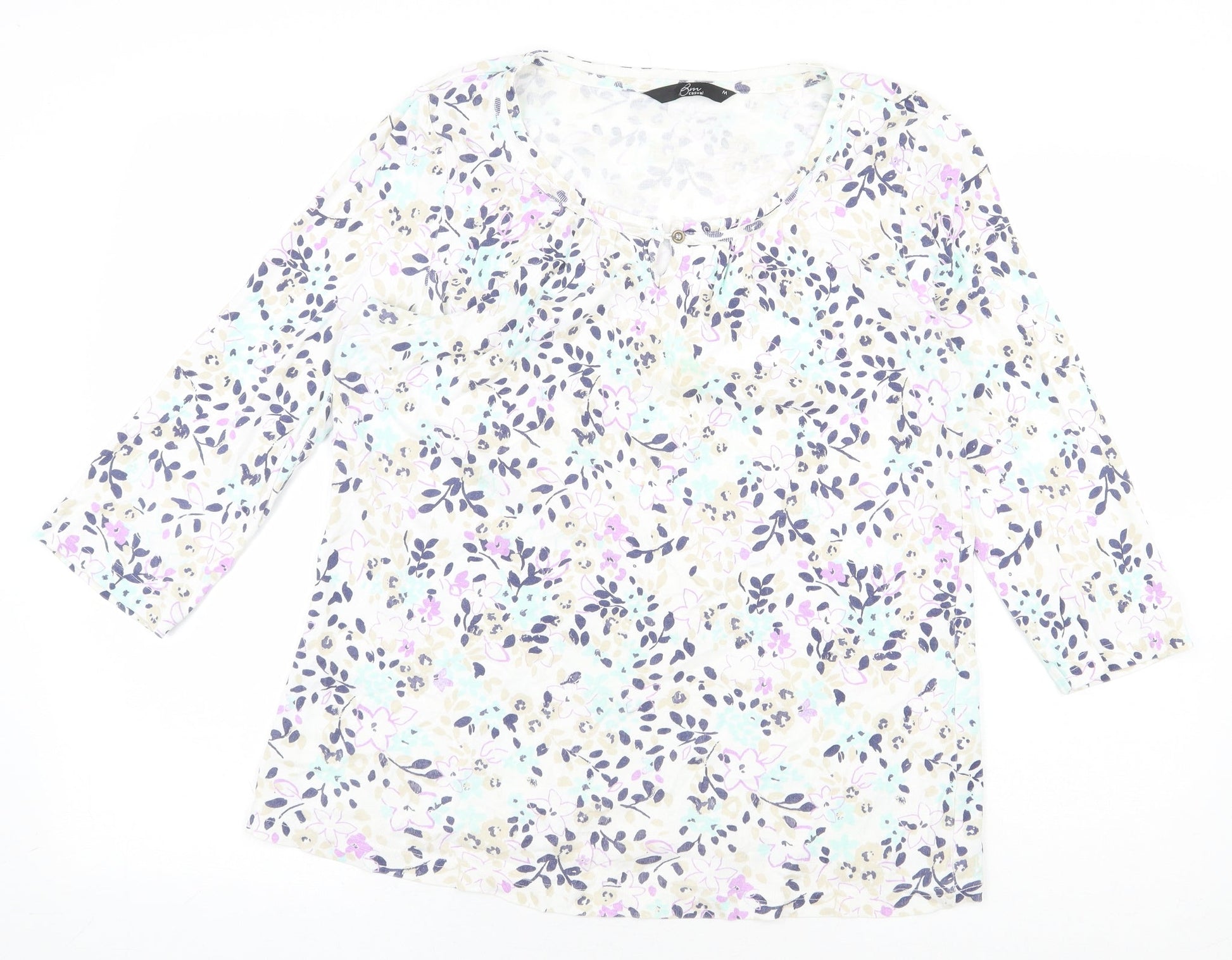 Bonmarché Womens Multicoloured Floral 100% Cotton Basic Blouse Size M Round Neck