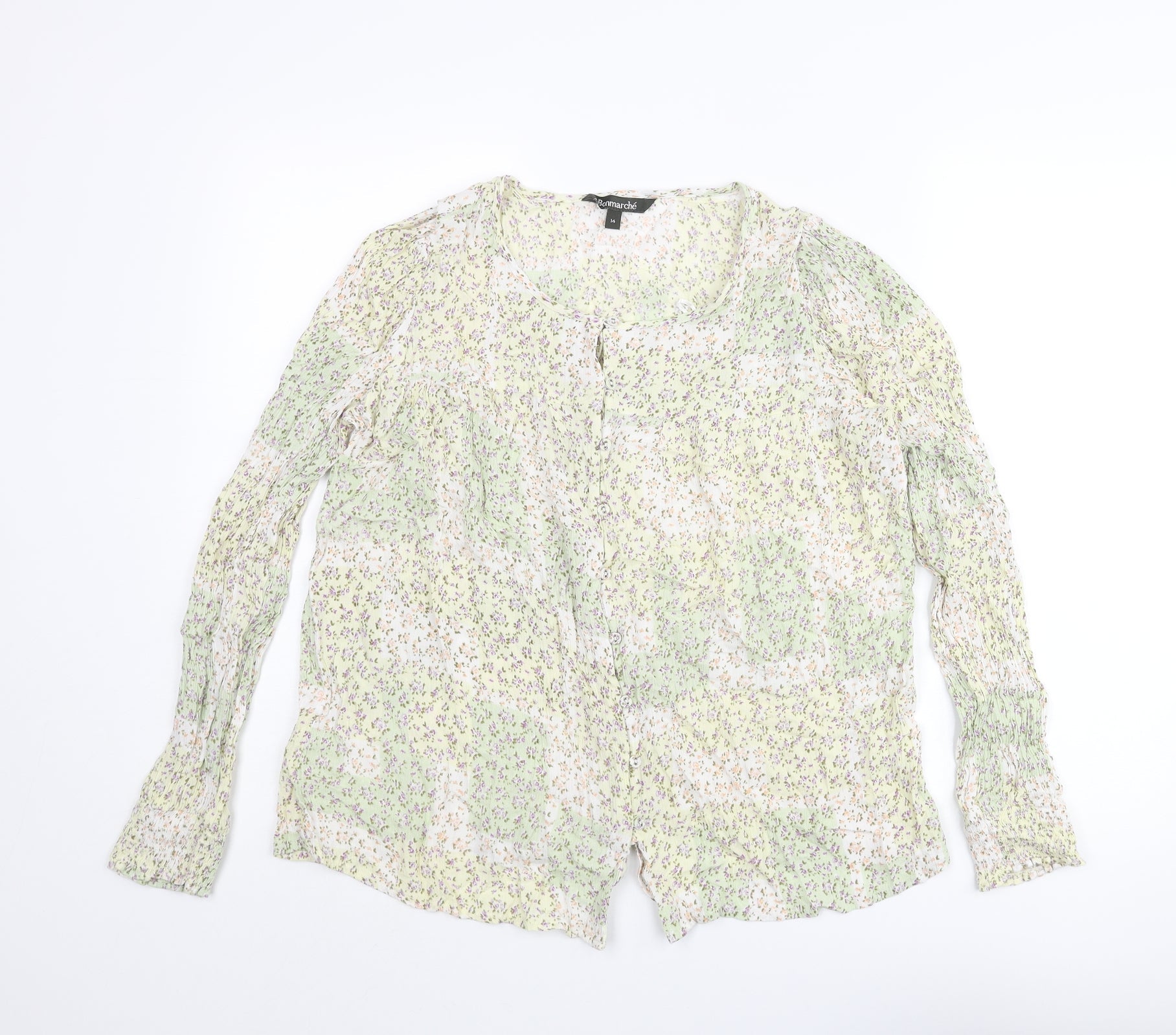 Bonmarché Womens Multicoloured Floral Viscose Basic Blouse Size 14 Round Neck