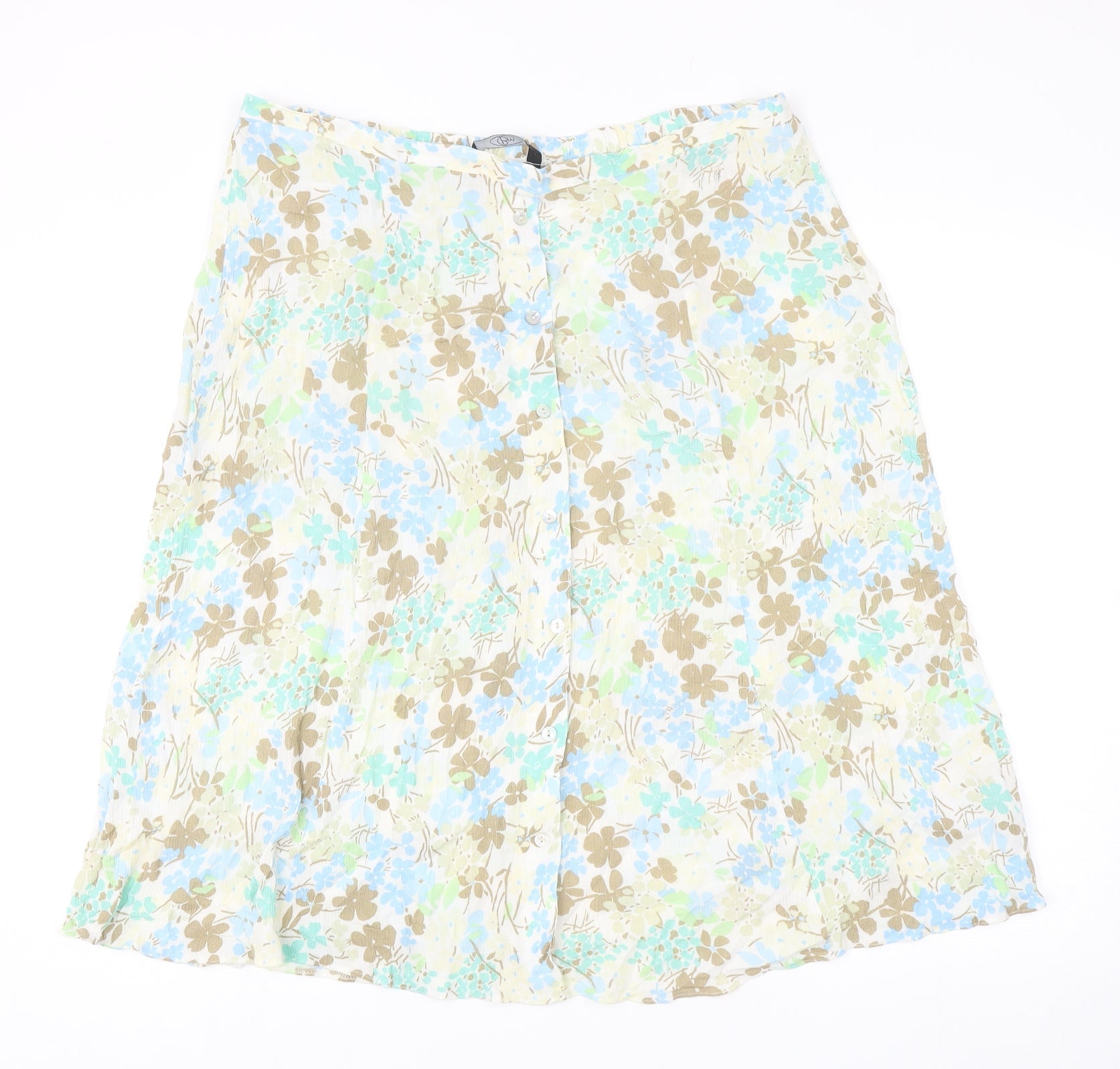 Bonmarché Womens Multicoloured Floral Viscose Straight & Pencil Skirt Size 16 Button