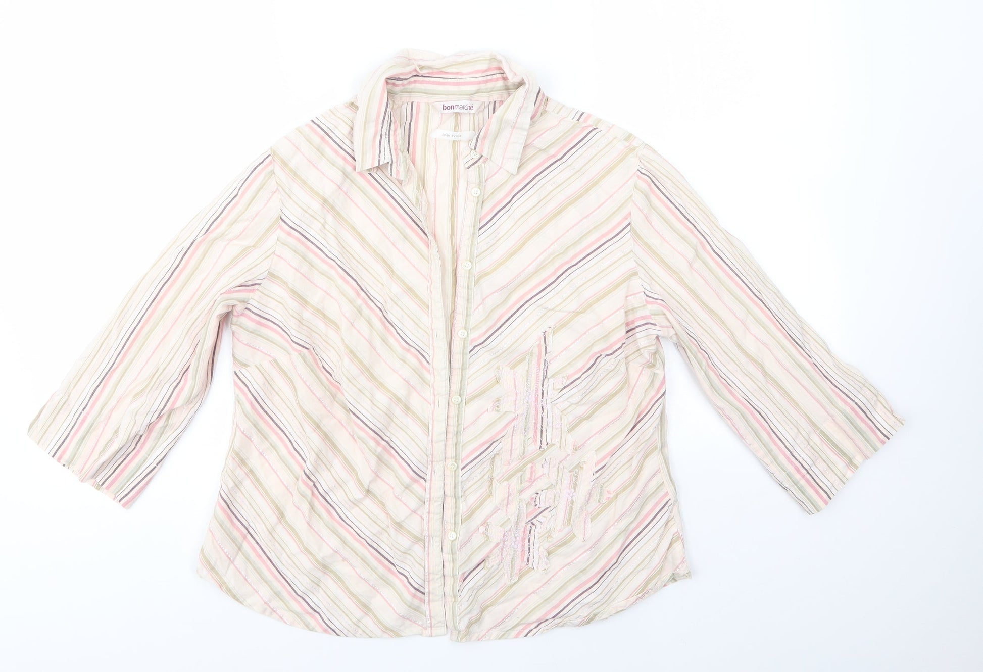 Bonmarché Womens Multicoloured Striped 100% Cotton Basic Button-Up Size 14 Collared