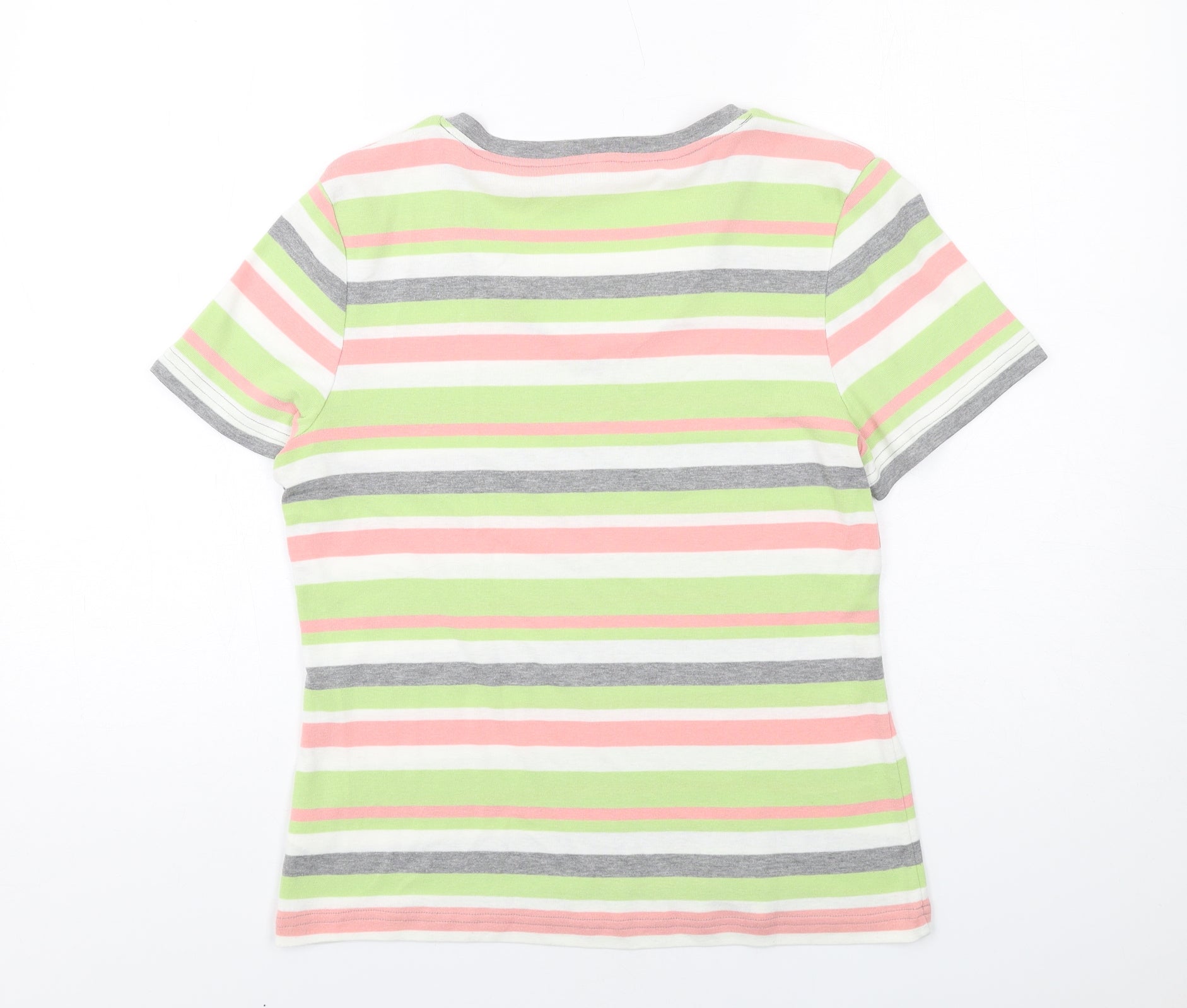 Bonmarché Womens Multicoloured Striped Polyester Basic T-Shirt Size M V-Neck