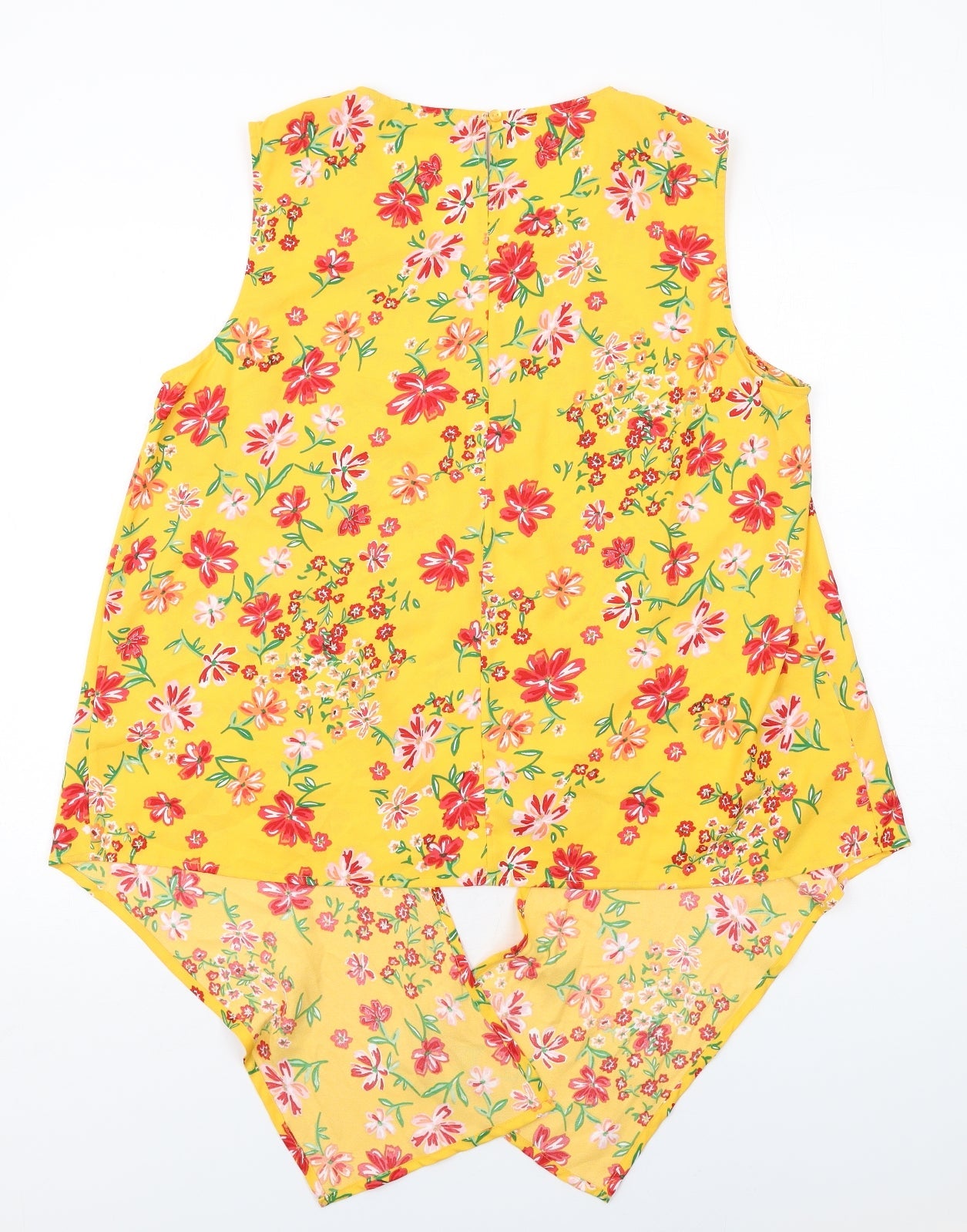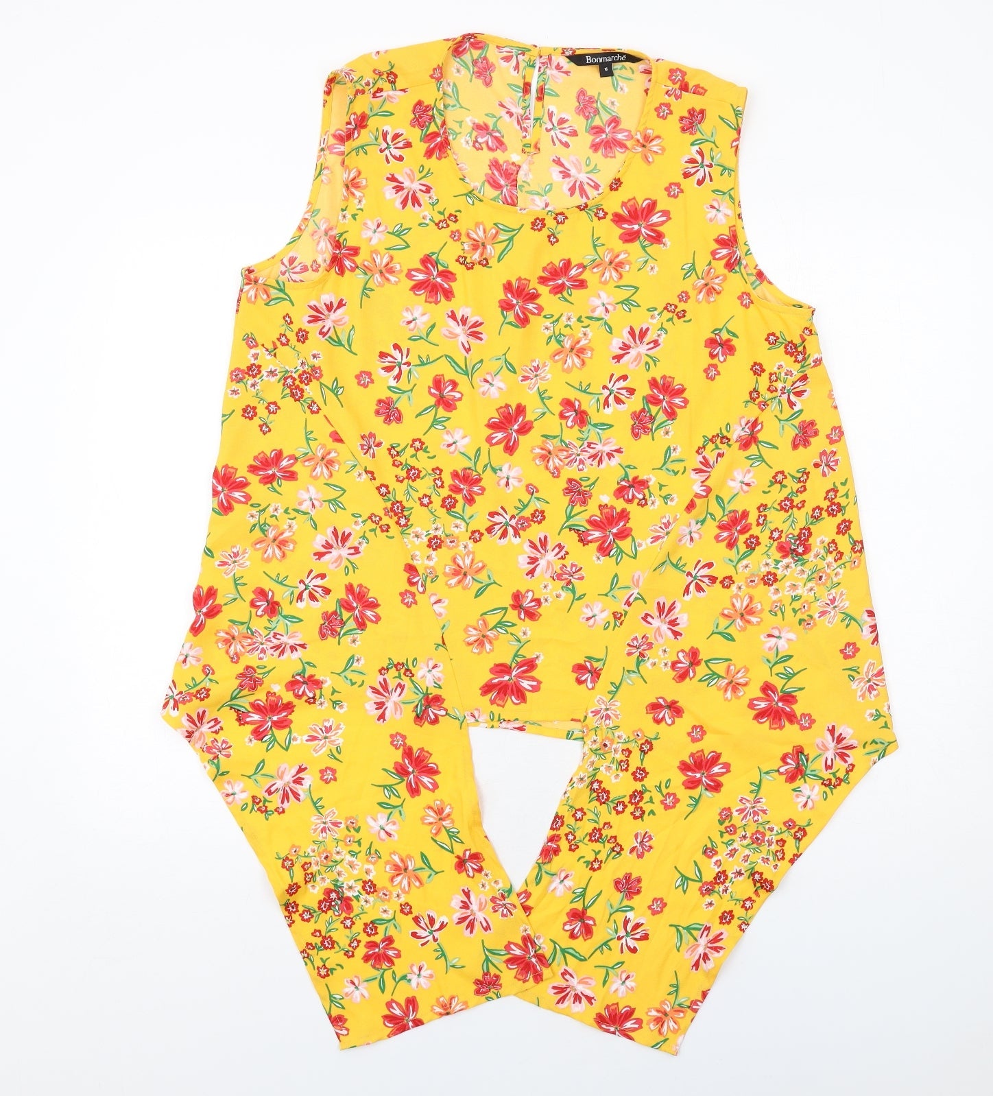 Bonmarché Womens Orange Floral Polyester Basic Blouse Size 16 Round Neck - Tie Front