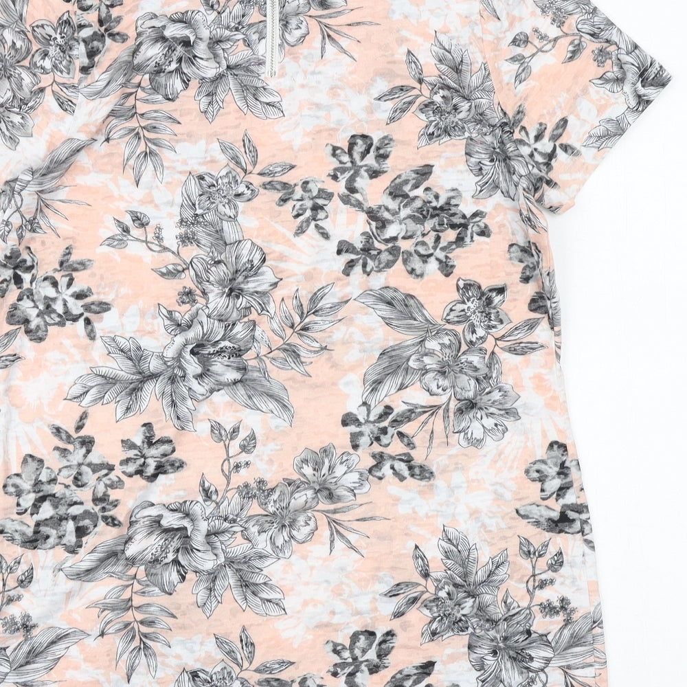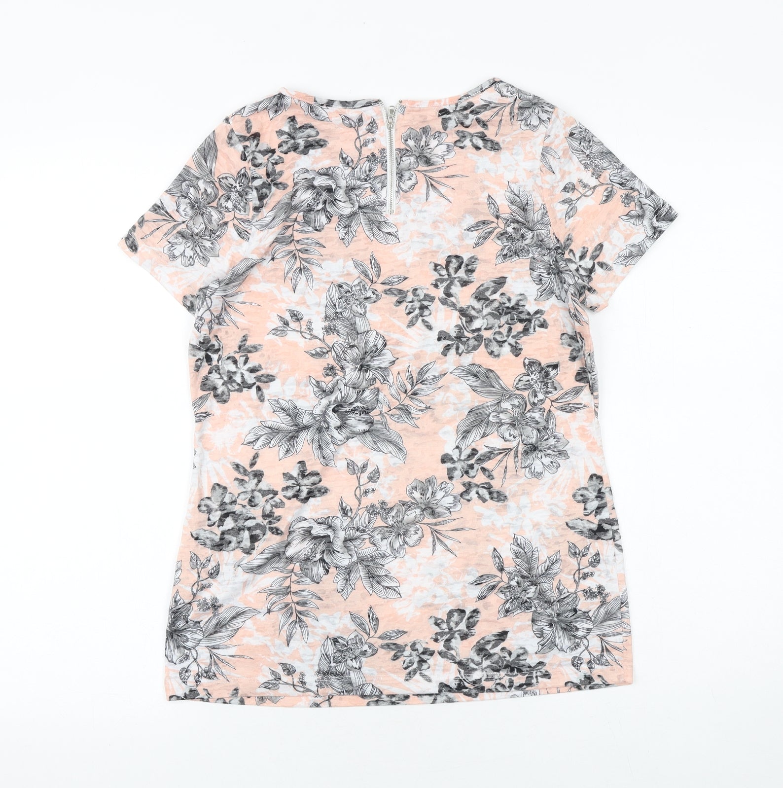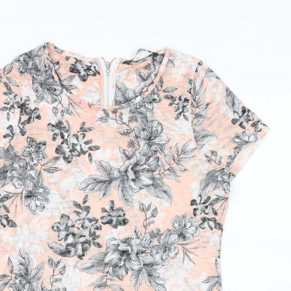 Bonmarché Womens Pink Geometric Viscose Basic T-Shirt Size 10 Round Neck