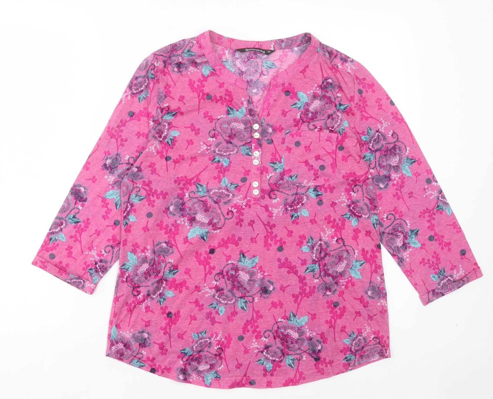 Bonmarché Womens Pink Paisley Polyester Basic T-Shirt Size 14 V-Neck - Pocket Detail