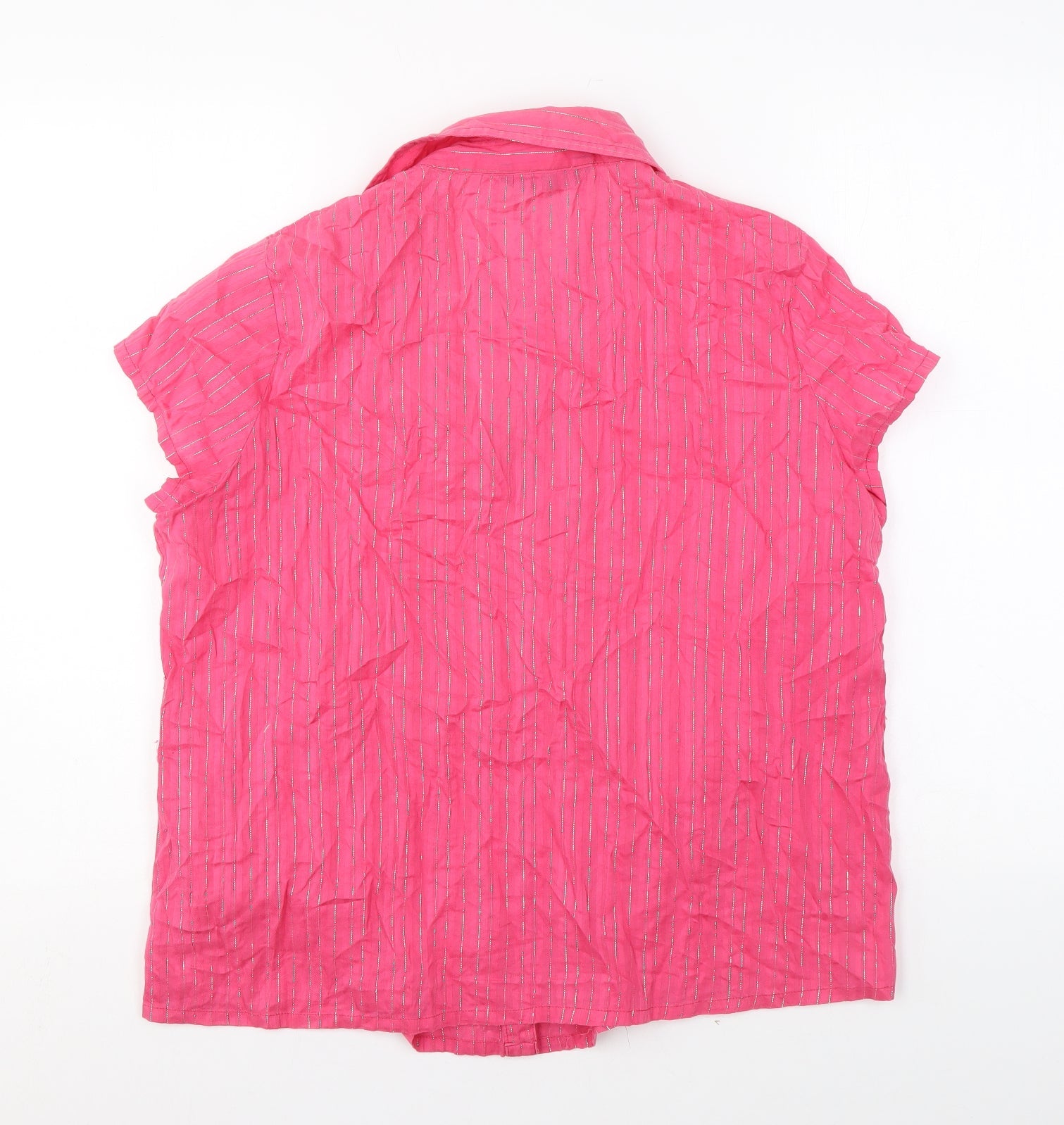 Bonmarché Womens Pink Striped Polyester Basic Button-Up Size 18 Collared