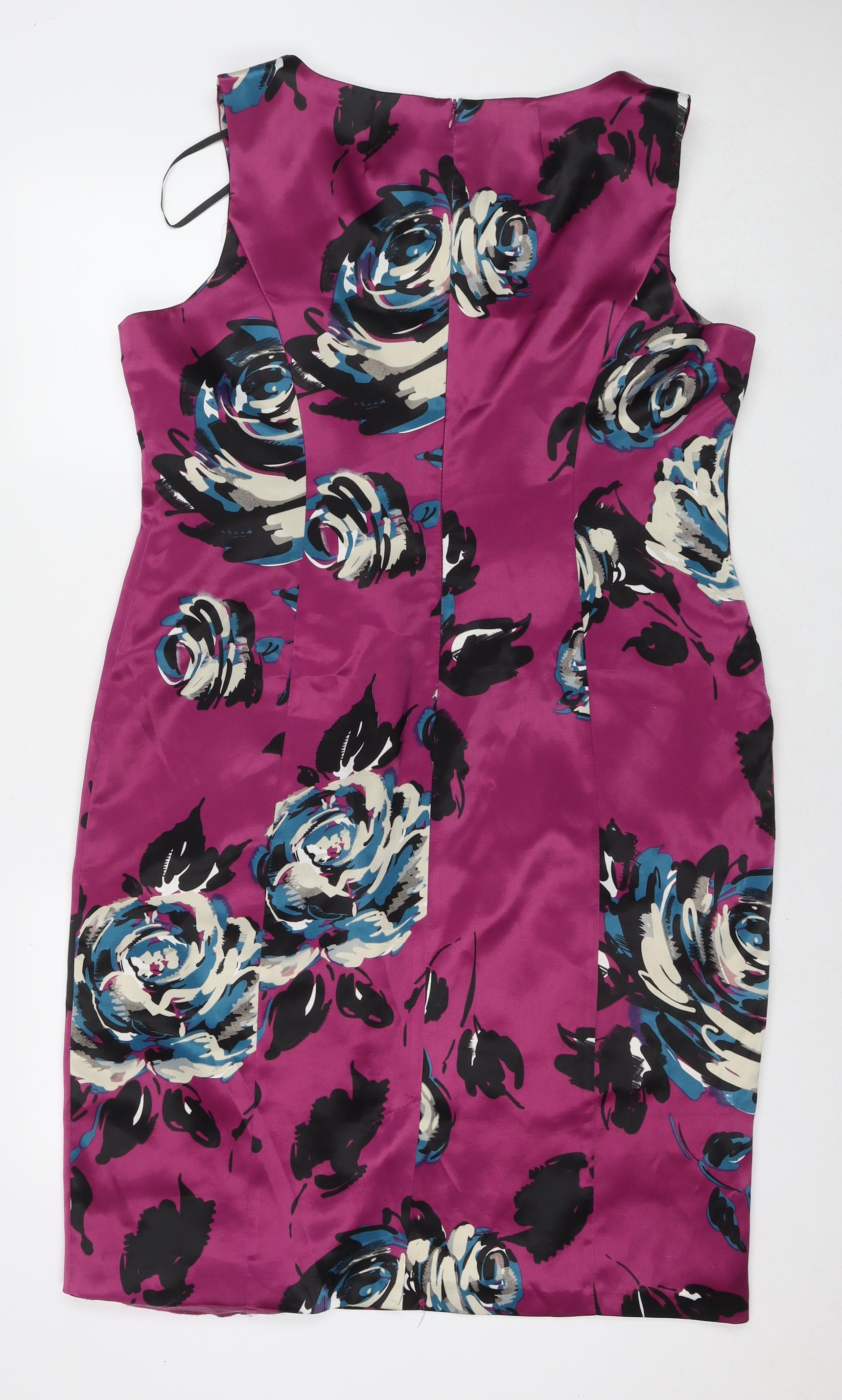 Bonmarché Womens Purple Floral Polyester A-Line Size 18 Round Neck Zip