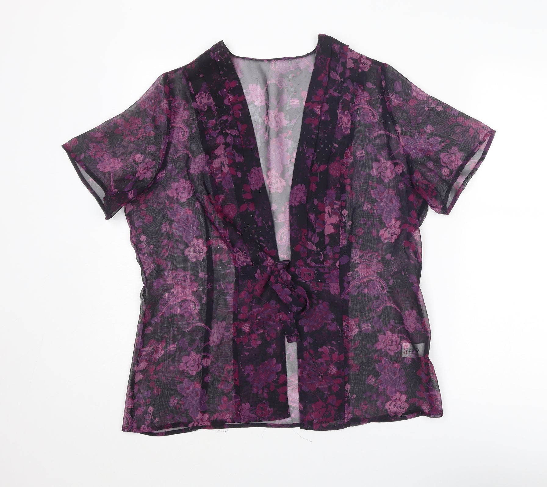 Bonmarché Womens Purple Floral Polyester Kimono Blouse Size 16 V-Neck