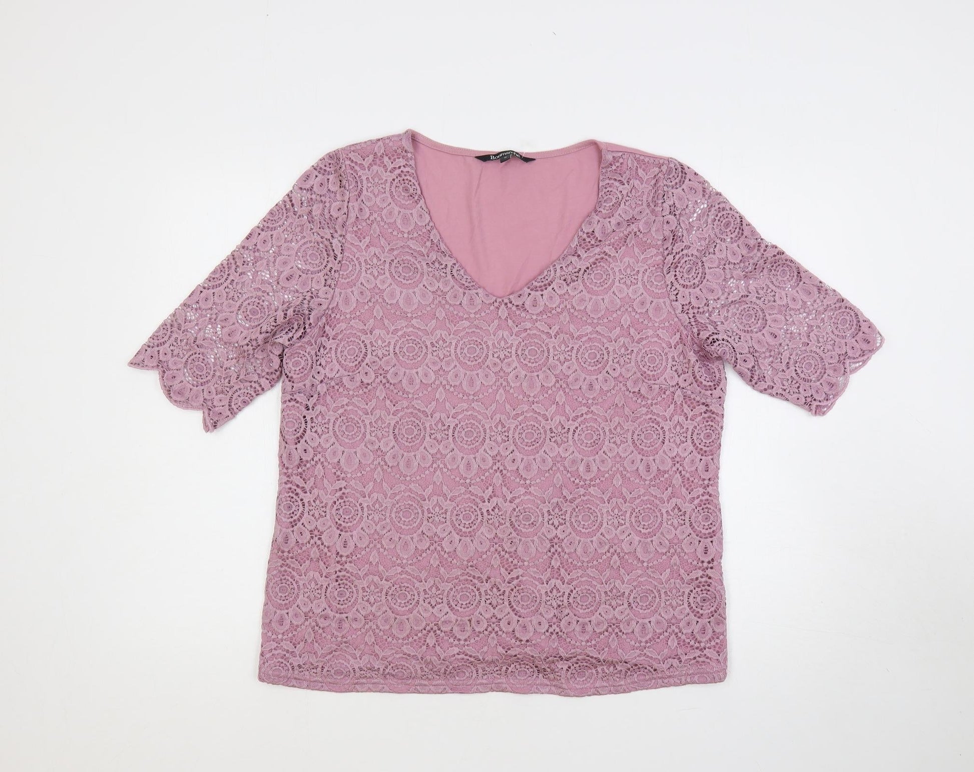 Bonmarché Womens Purple Polyester Basic Blouse Size 16 V-Neck