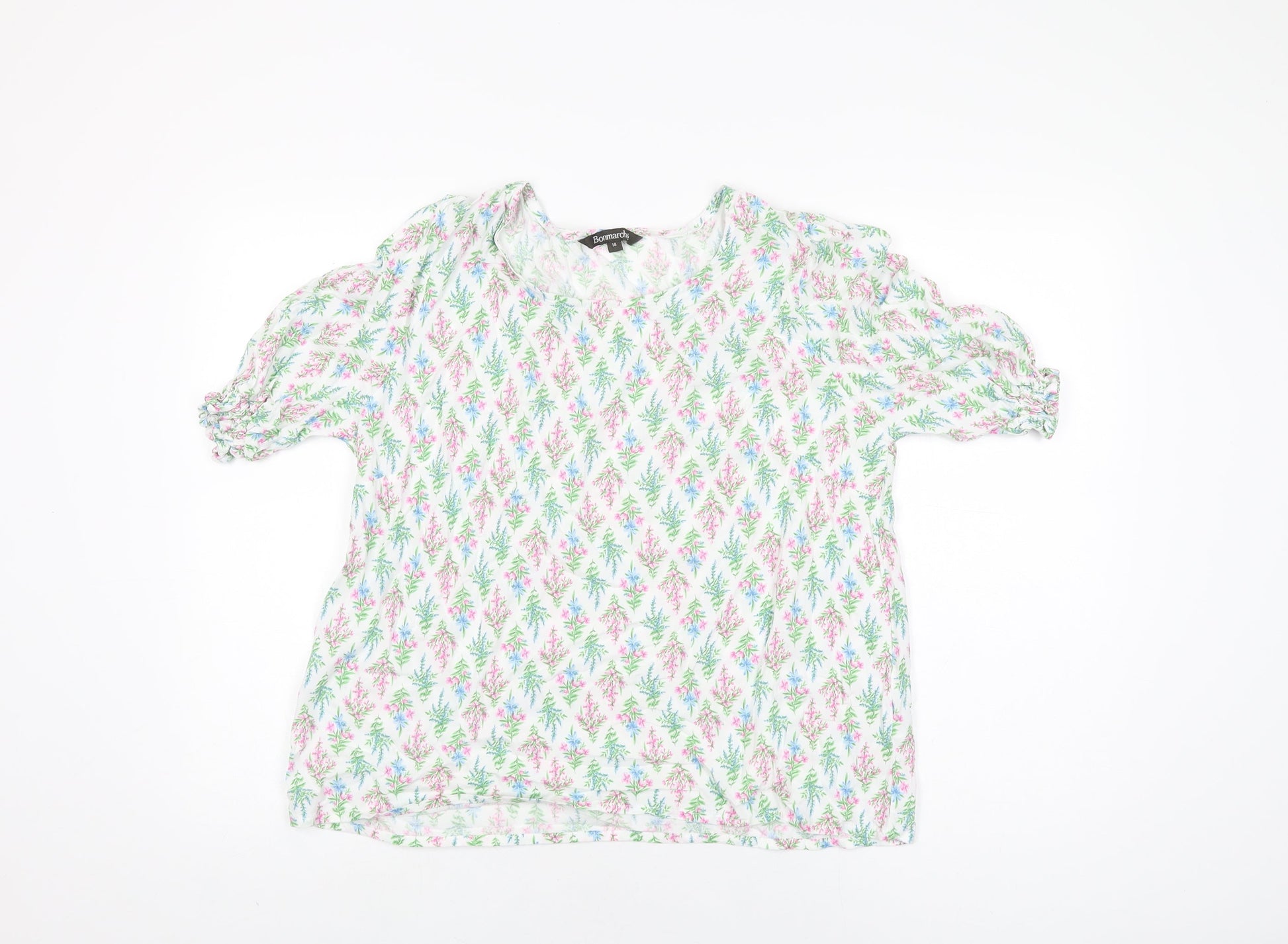 Bonmarché Womens White Floral Viscose Basic T-Shirt Size 14 Round Neck