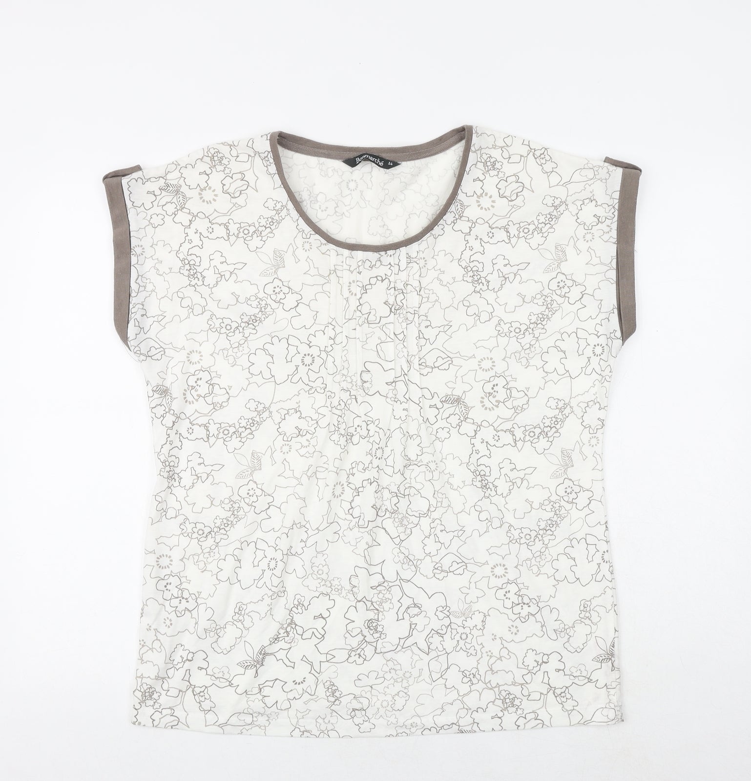 Bonmarché Womens White Geometric Polyester Basic T-Shirt Size 14 Round Neck