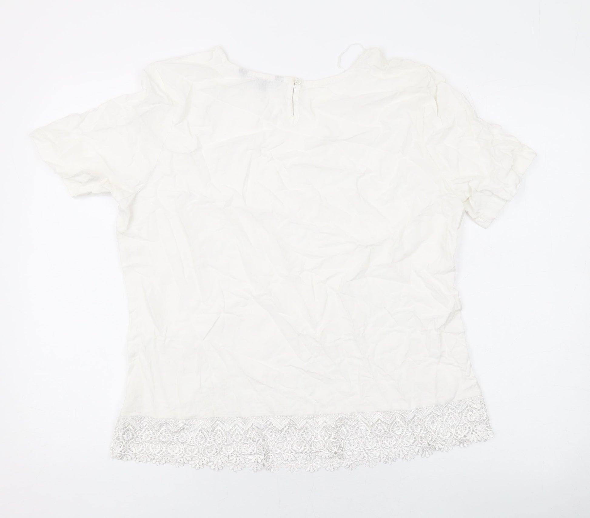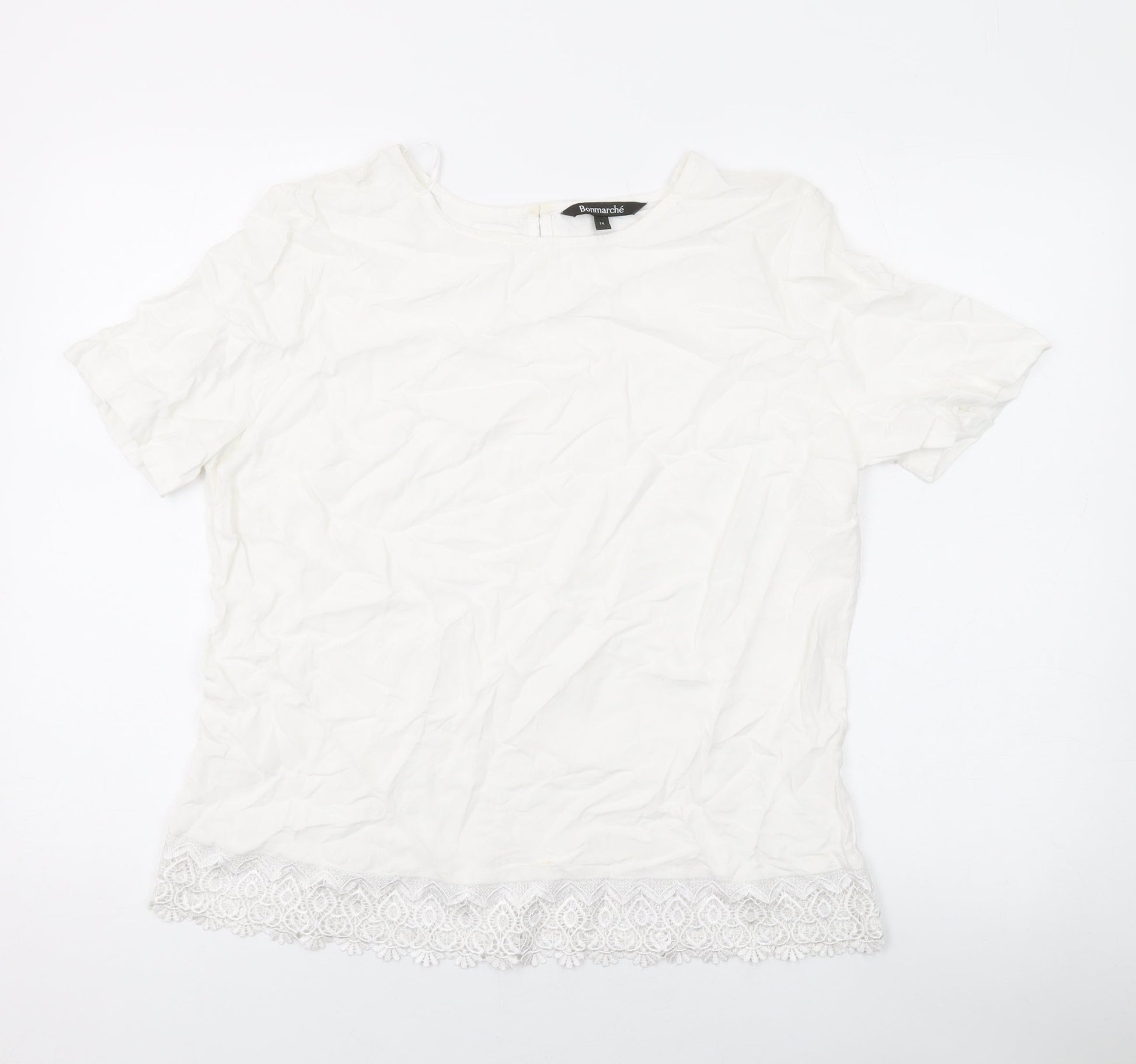 Bonmarché Womens White Polyester Basic T-Shirt Size 14 Roll Neck