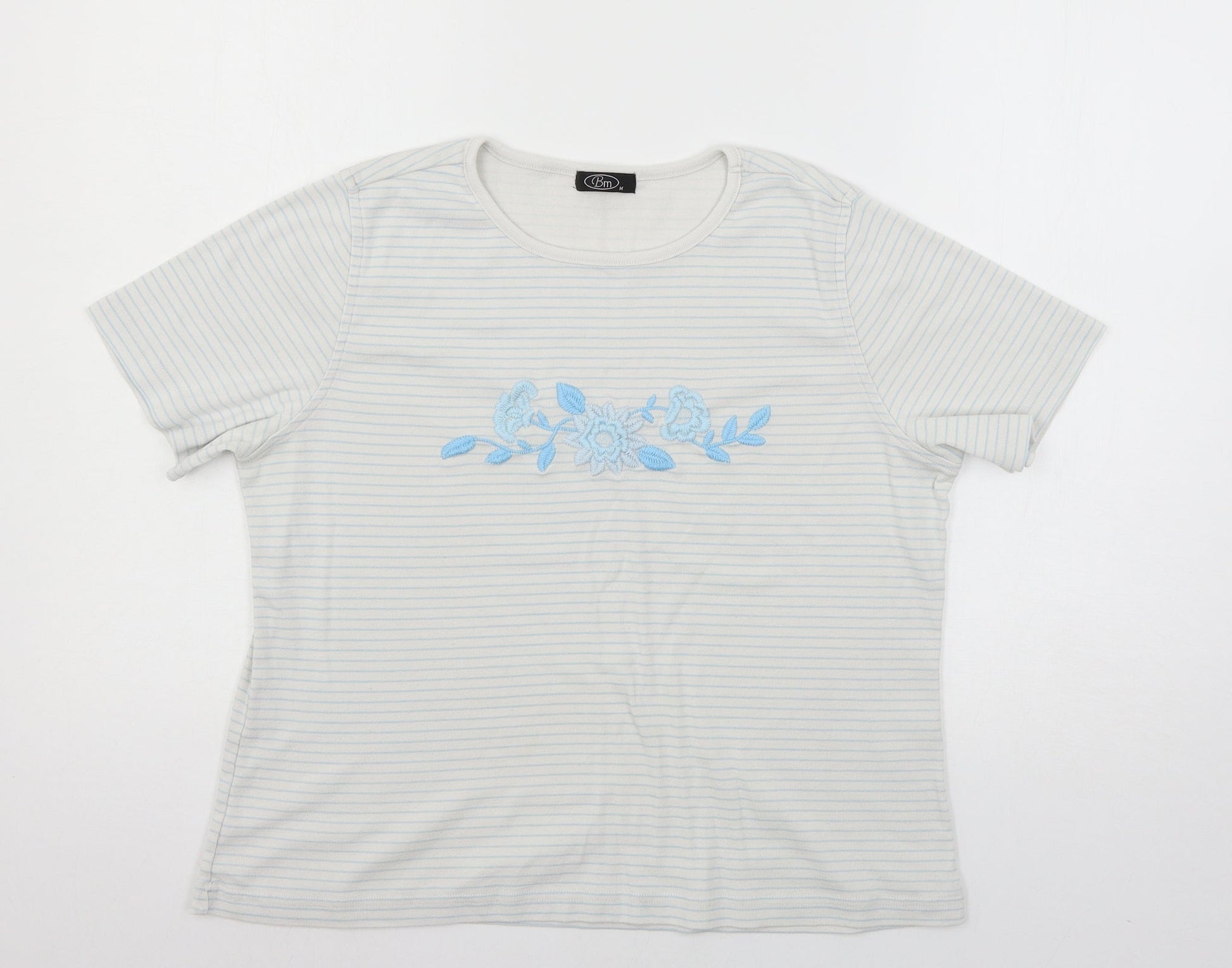 Bonmarché Womens White Striped Jersey Basic T-Shirt Size M