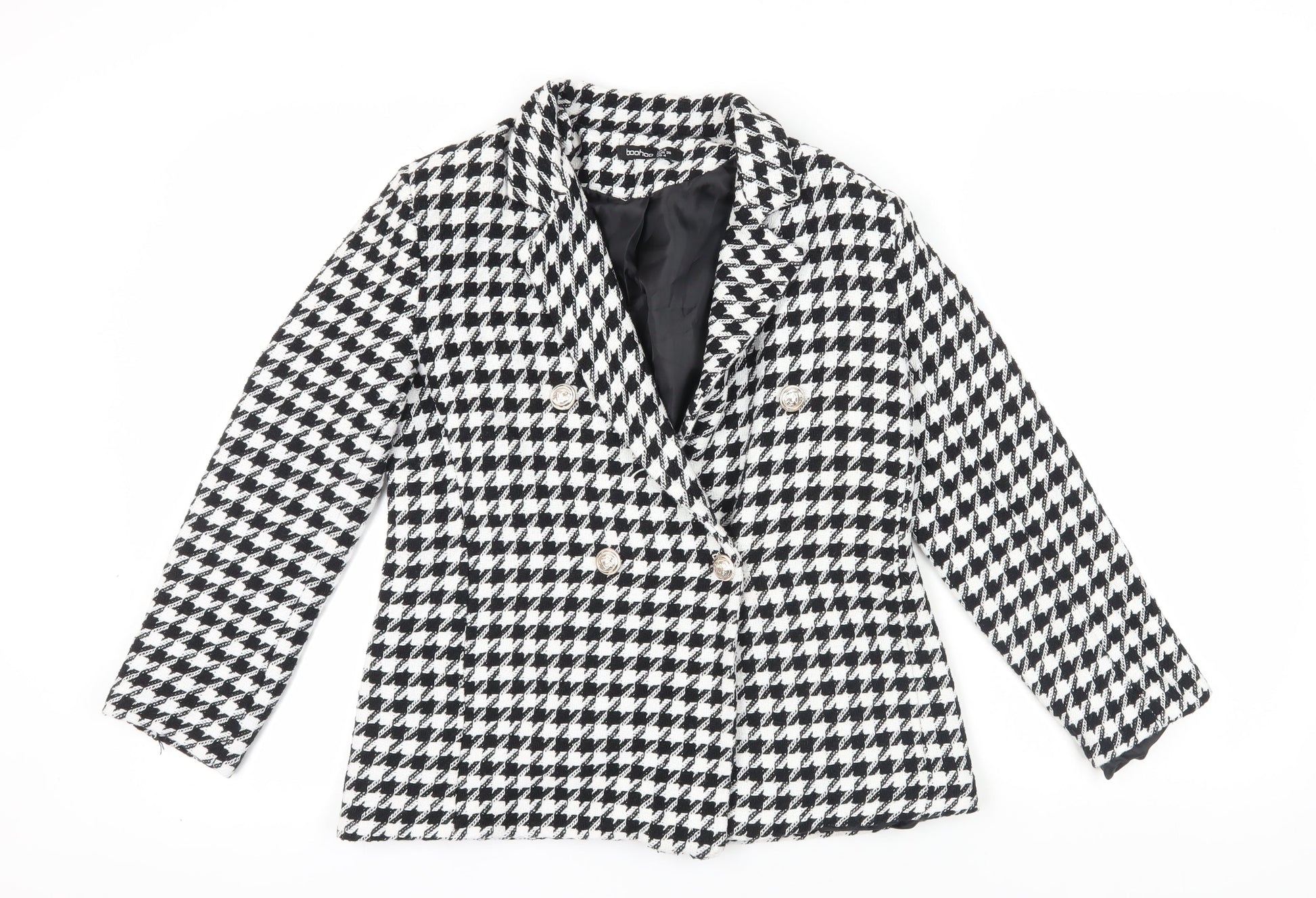 Boohoo Black White Houndstooth Blazer, Size 8, Classic Style