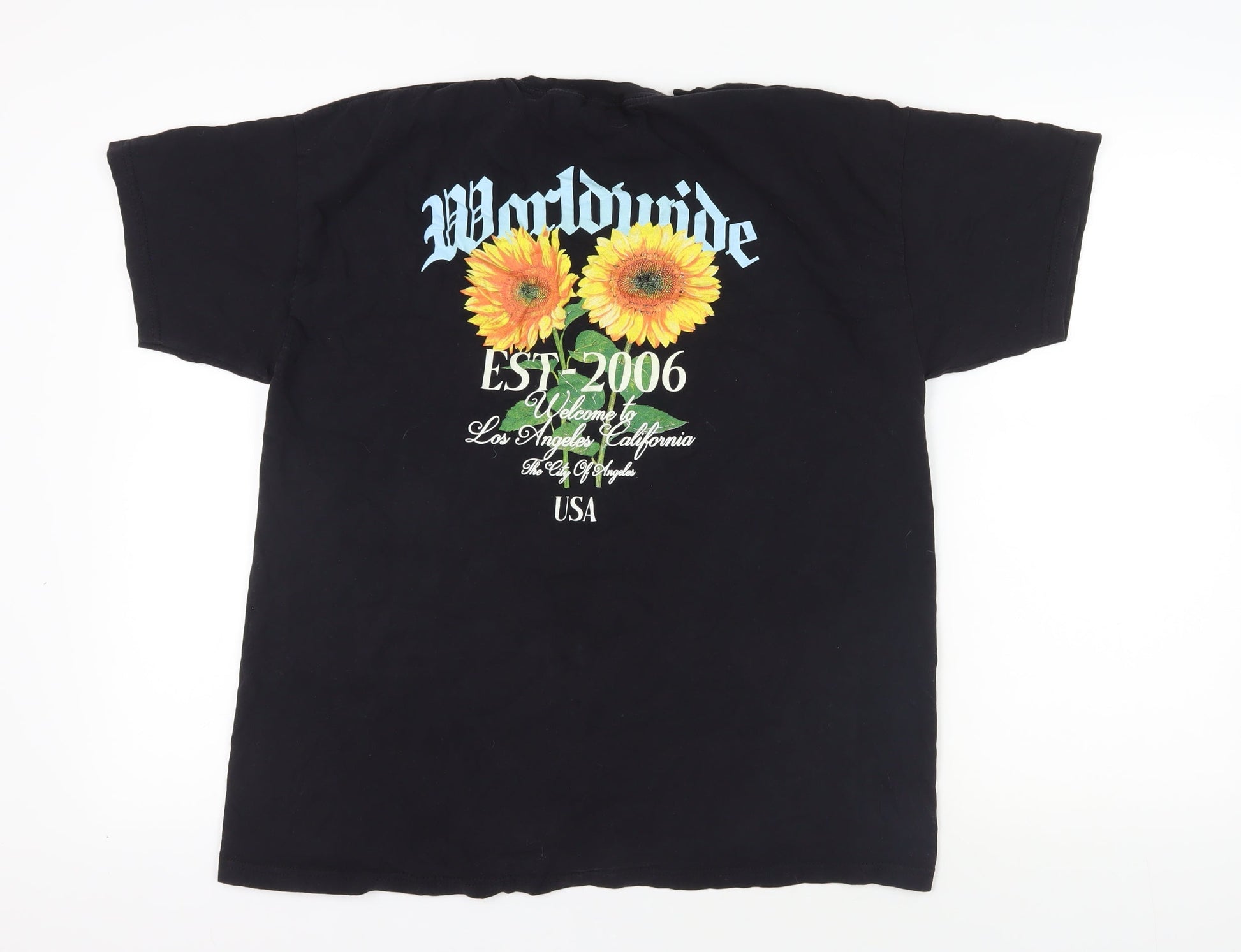 Boohoo Black Womens T-Shirt with Floral Graphic, Size L