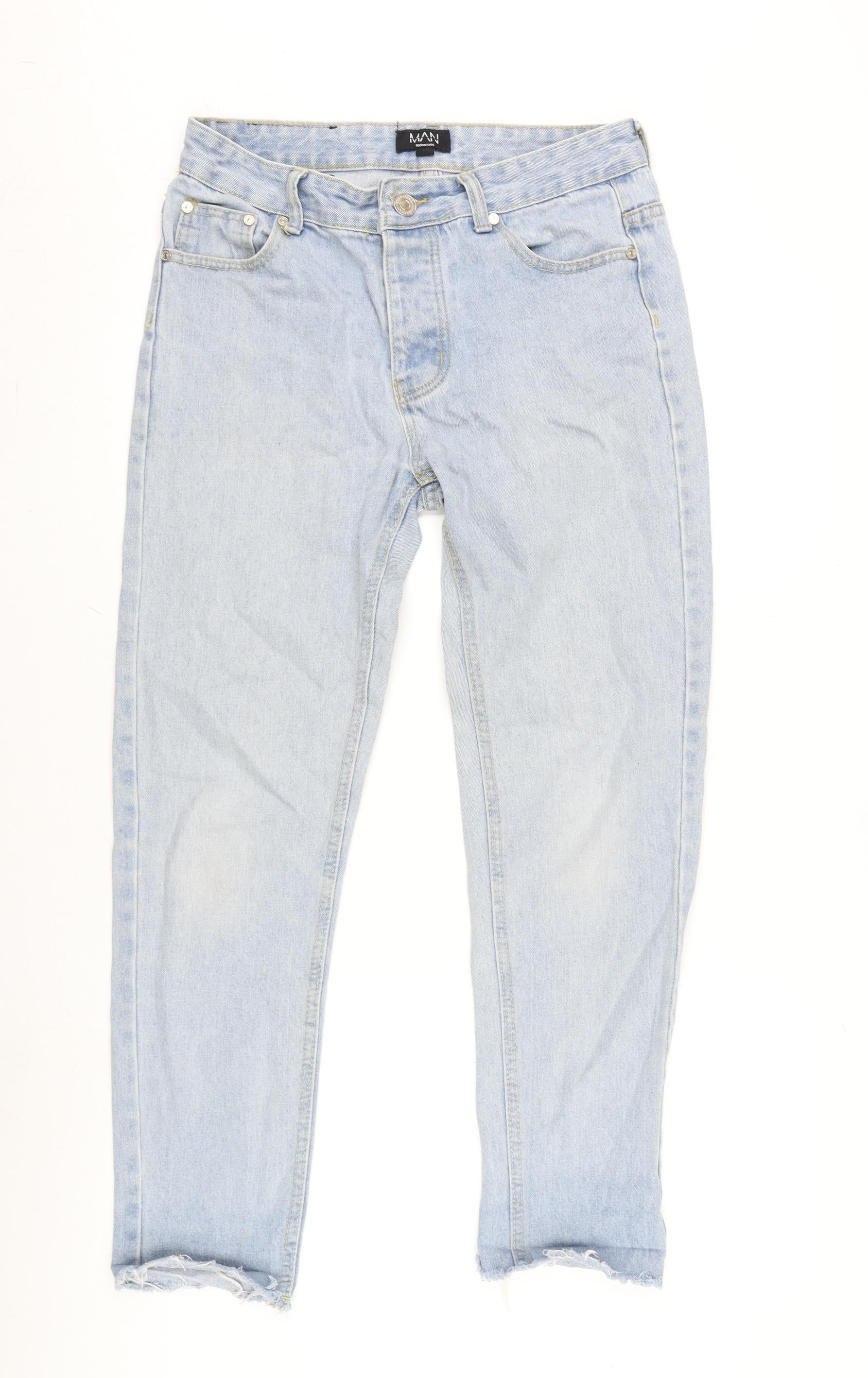 Boohoo MAN Mens Blue Cotton Straight Jeans Size 30 in L28 in Regular Zip - Raw Hem
