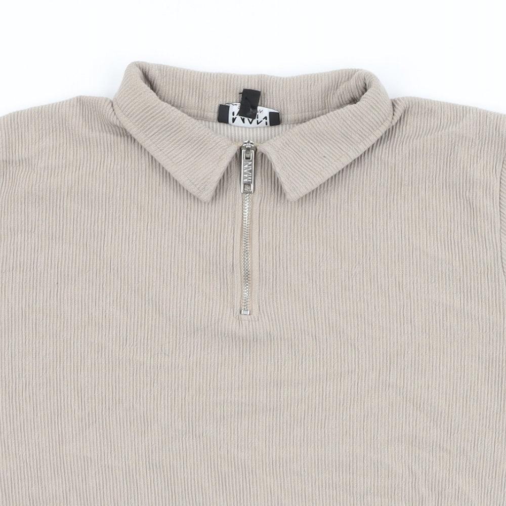 Boohoo Mens Beige Polyester Polo Size L Collared Zip