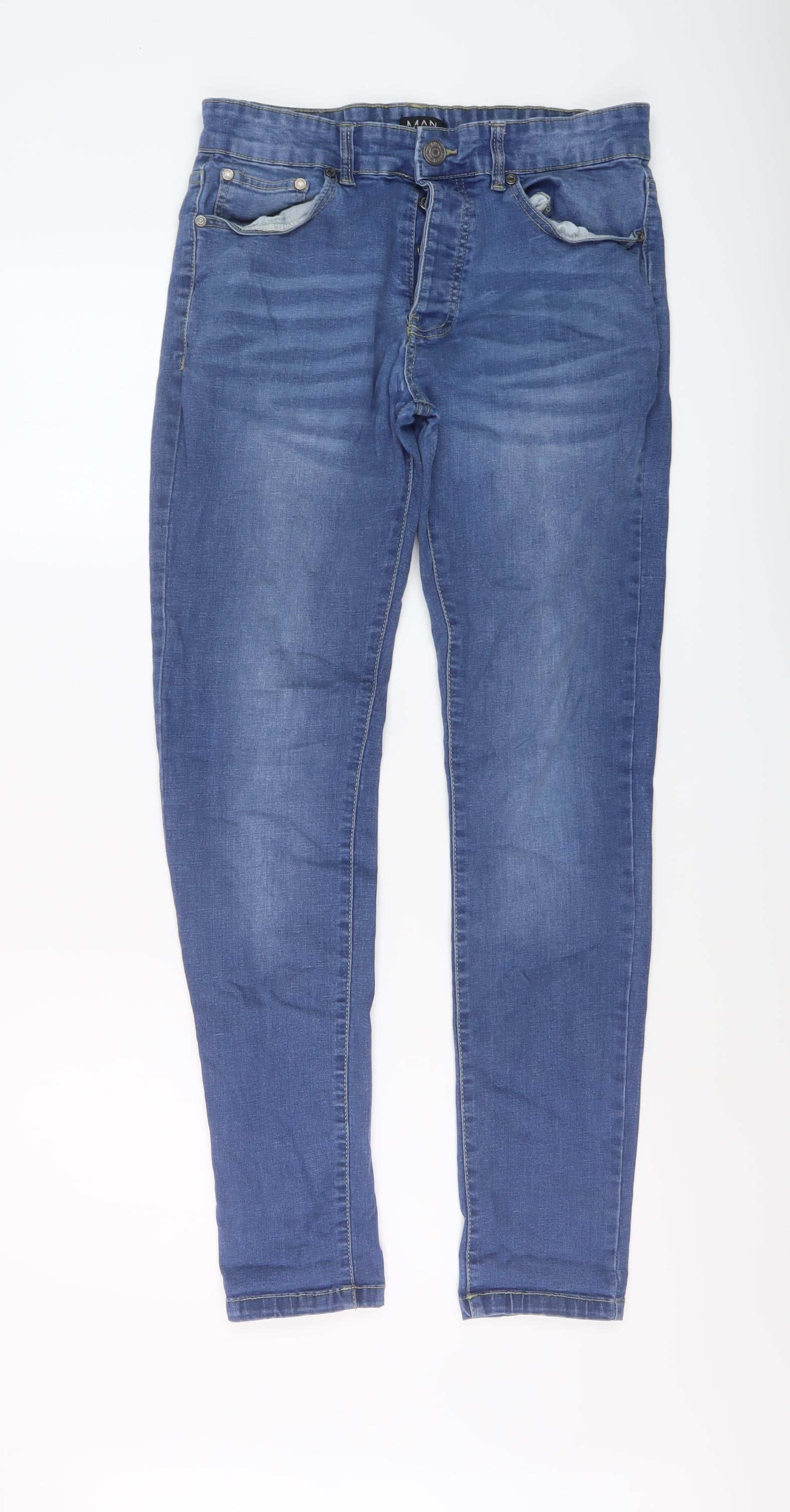 Boohoo Mens Blue Cotton Skinny Jeans Size 32 in L29 in Regular Button
