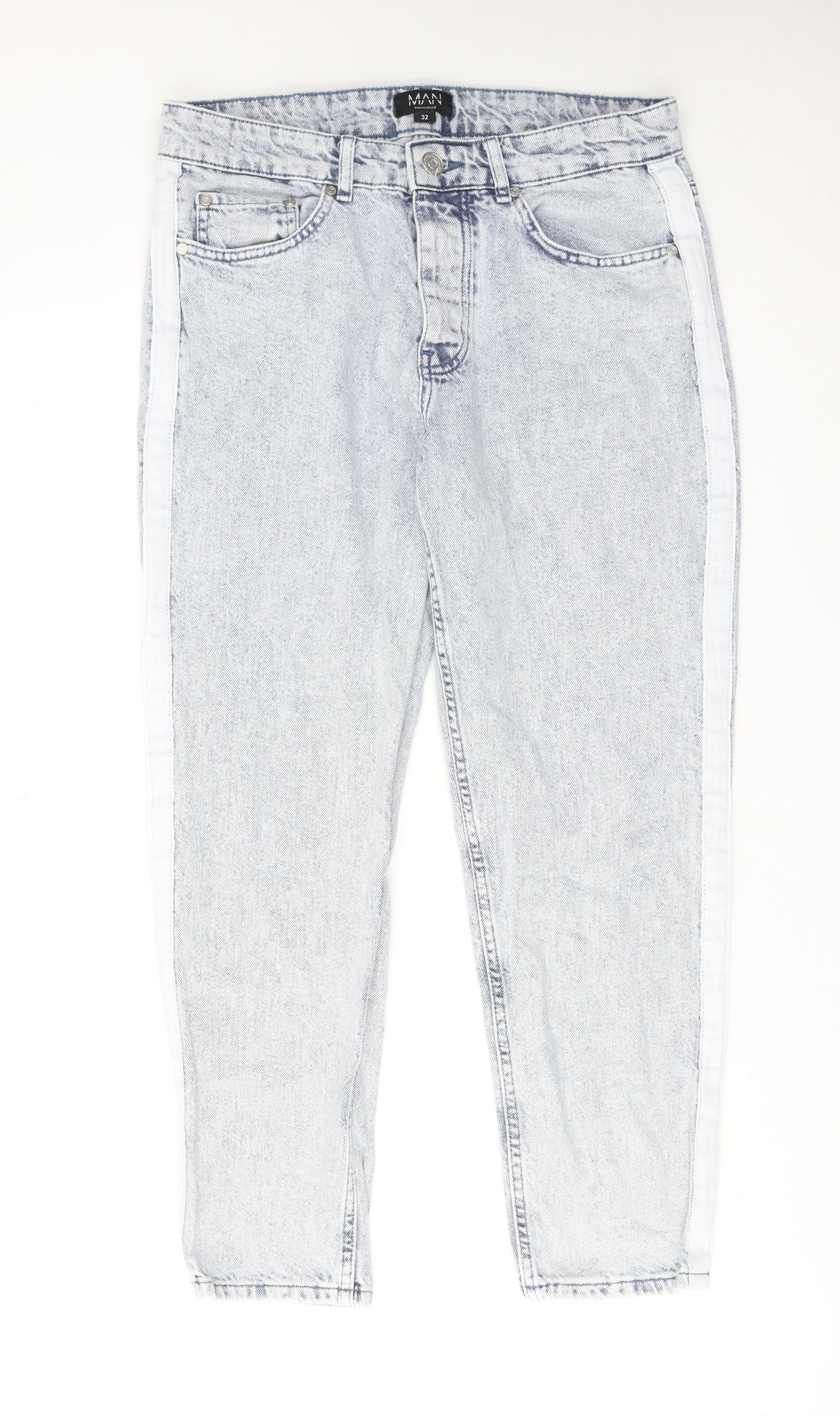 Boohoo Mens Blue Cotton Tapered Jeans Size 32 in Regular Zip - Side Stripe Detail