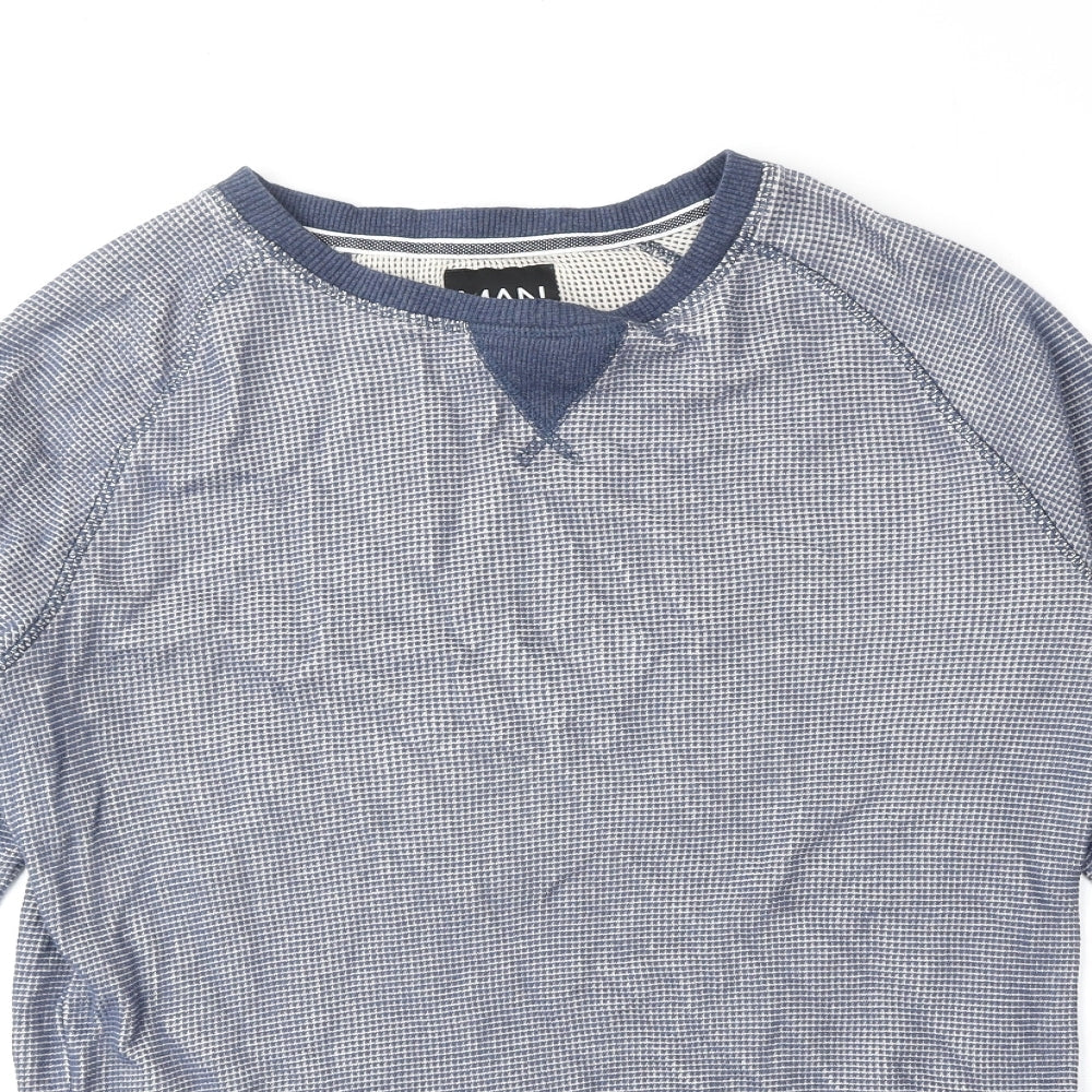 Boohoo Mens Blue Round Neck Cotton Pullover Jumper Size S Long Sleeve
