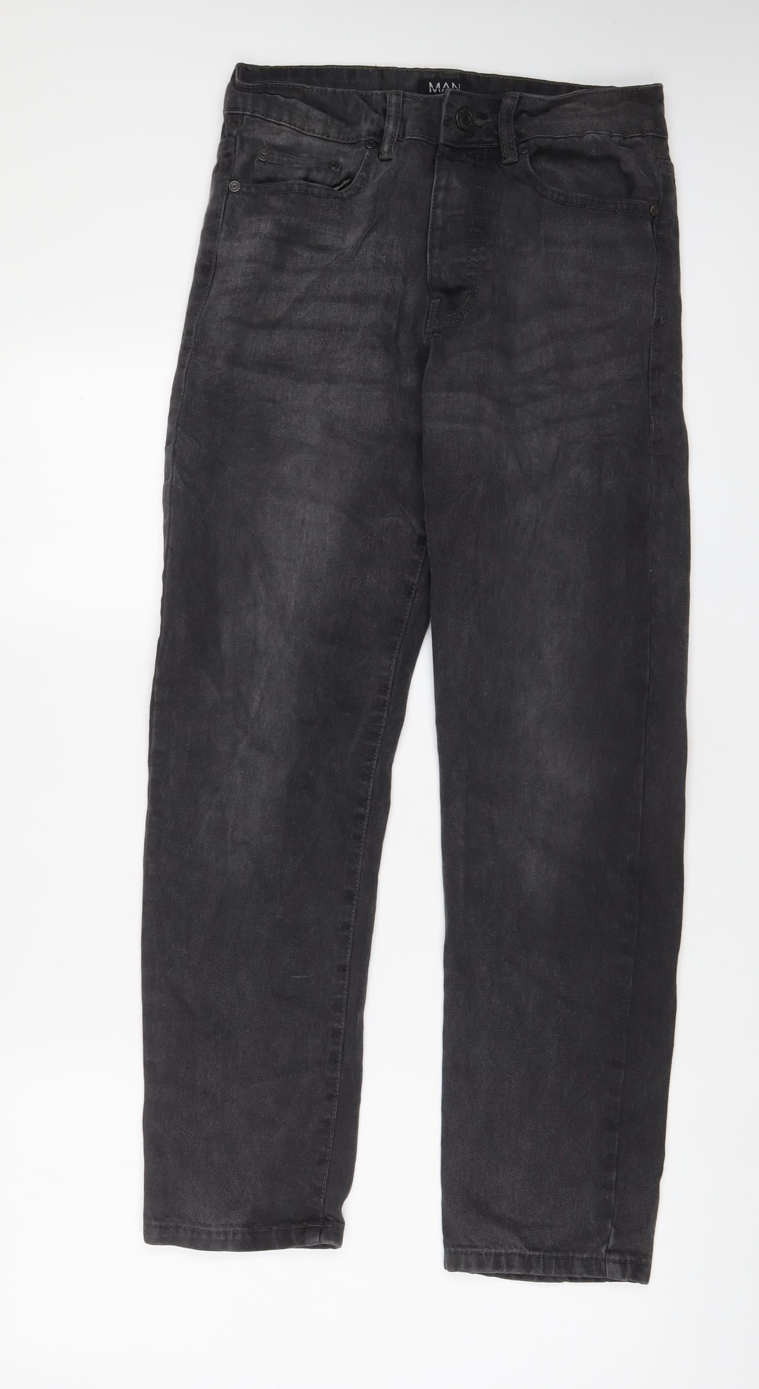Boohoo Mens Grey Cotton Straight Jeans Size 28 in L29 in Regular Button - Short Leg