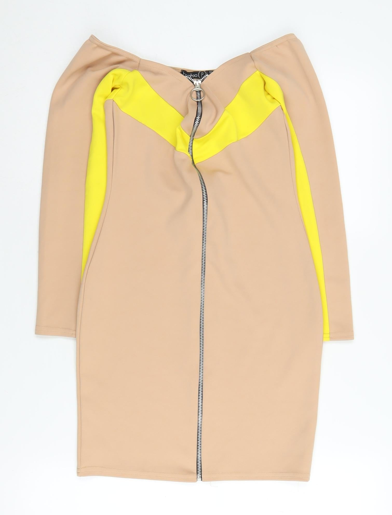 Boohoo Petite Beige Bodycon Dress, Size 8