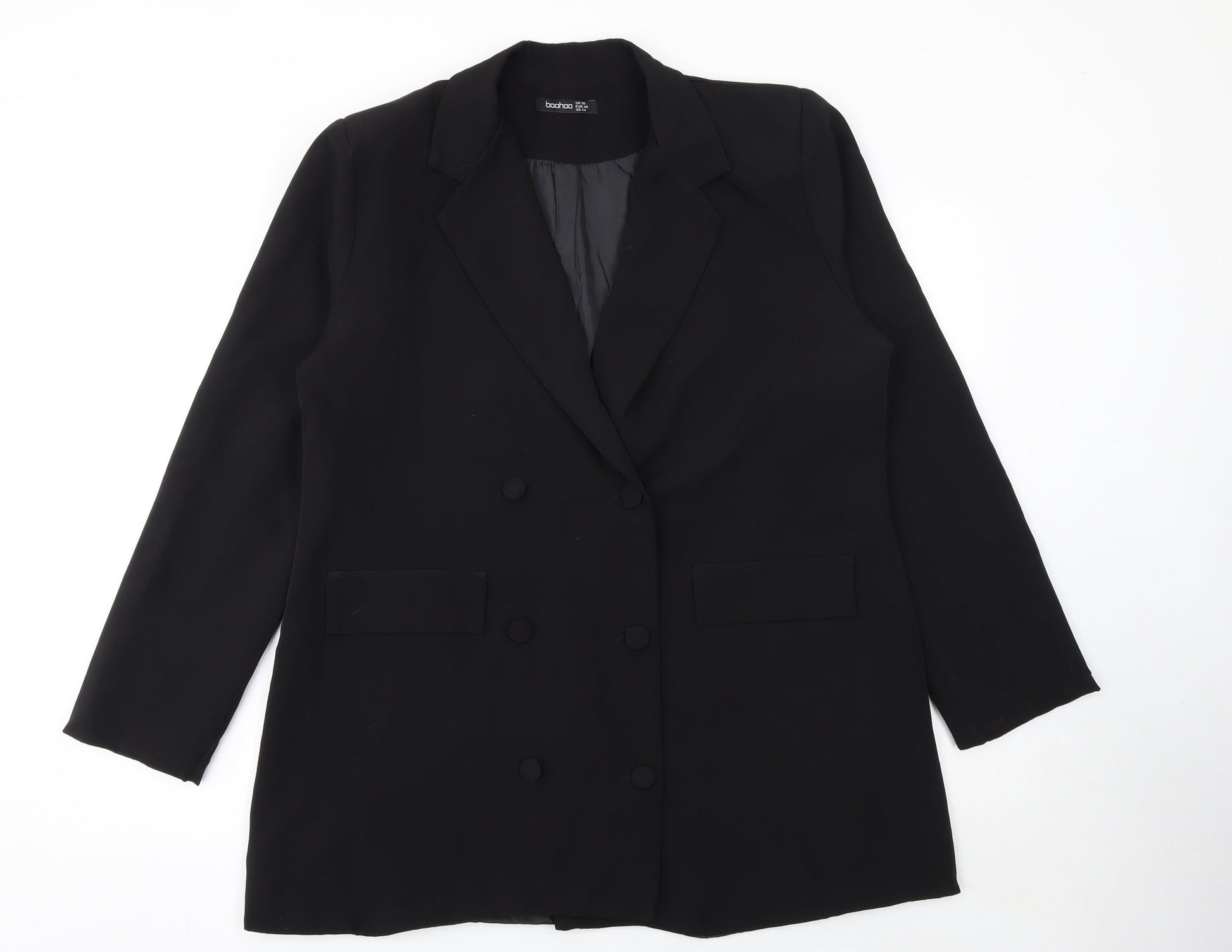 Boohoo Women Black Double-Breasted Suit Jacket UK 18 Long Sleeve