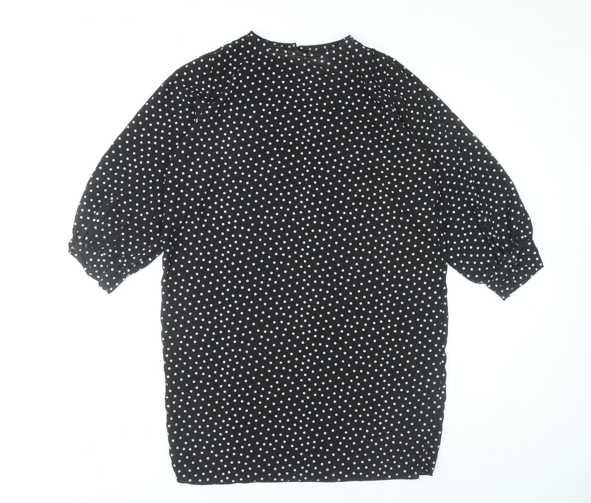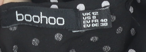Boohoo Women Black Polka Dot Shift Dress Size 12 Puff Sleeve