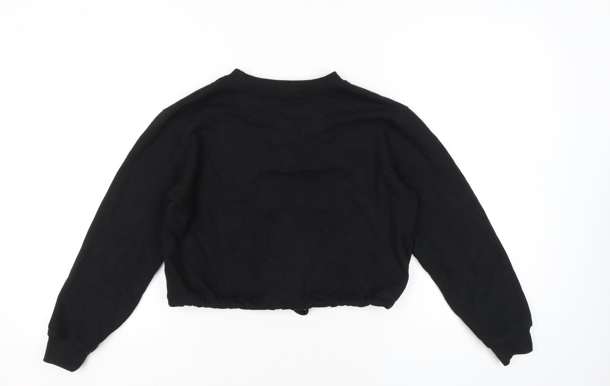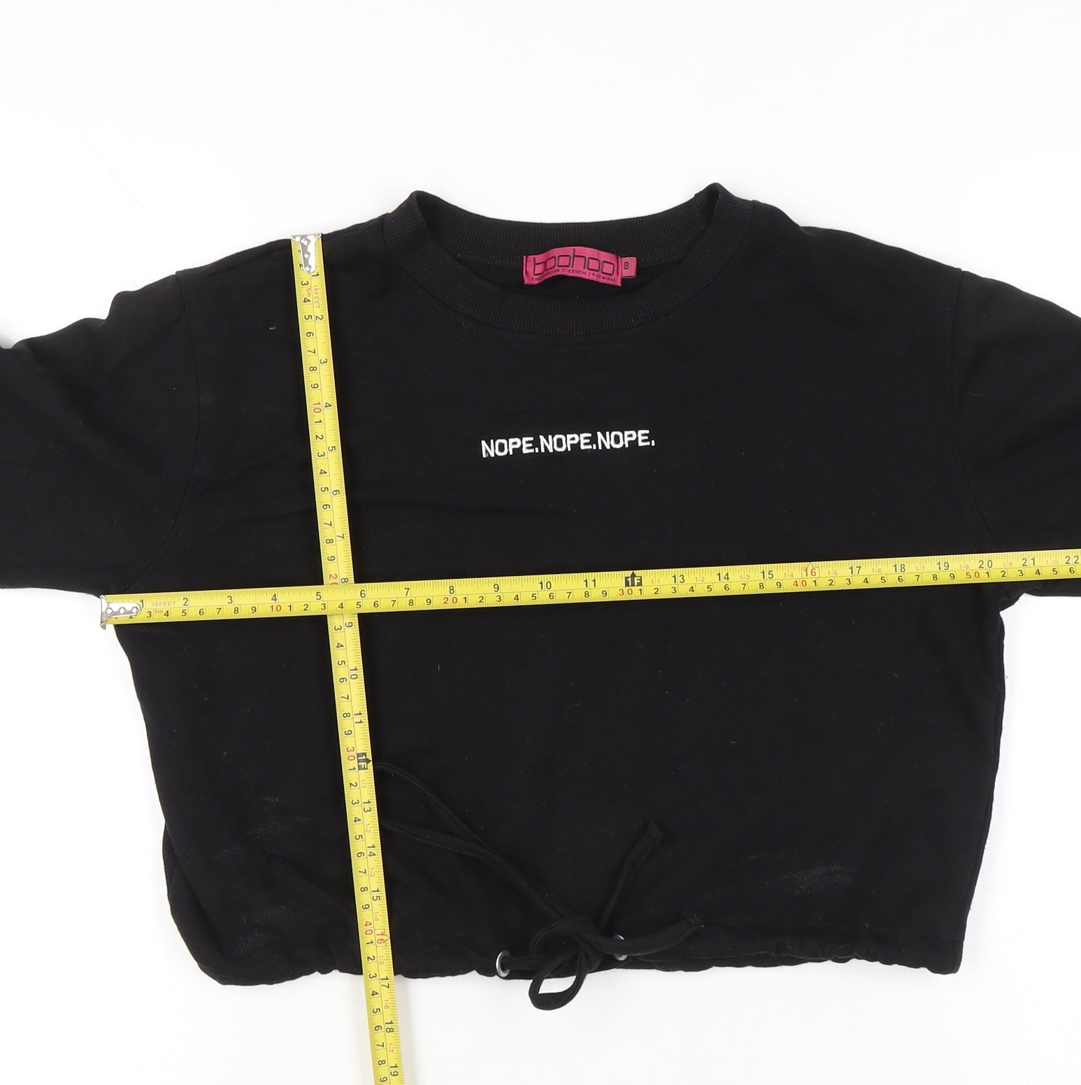 Boohoo Women Black S Pullover Sweatshirt Drawstring Crop Casual