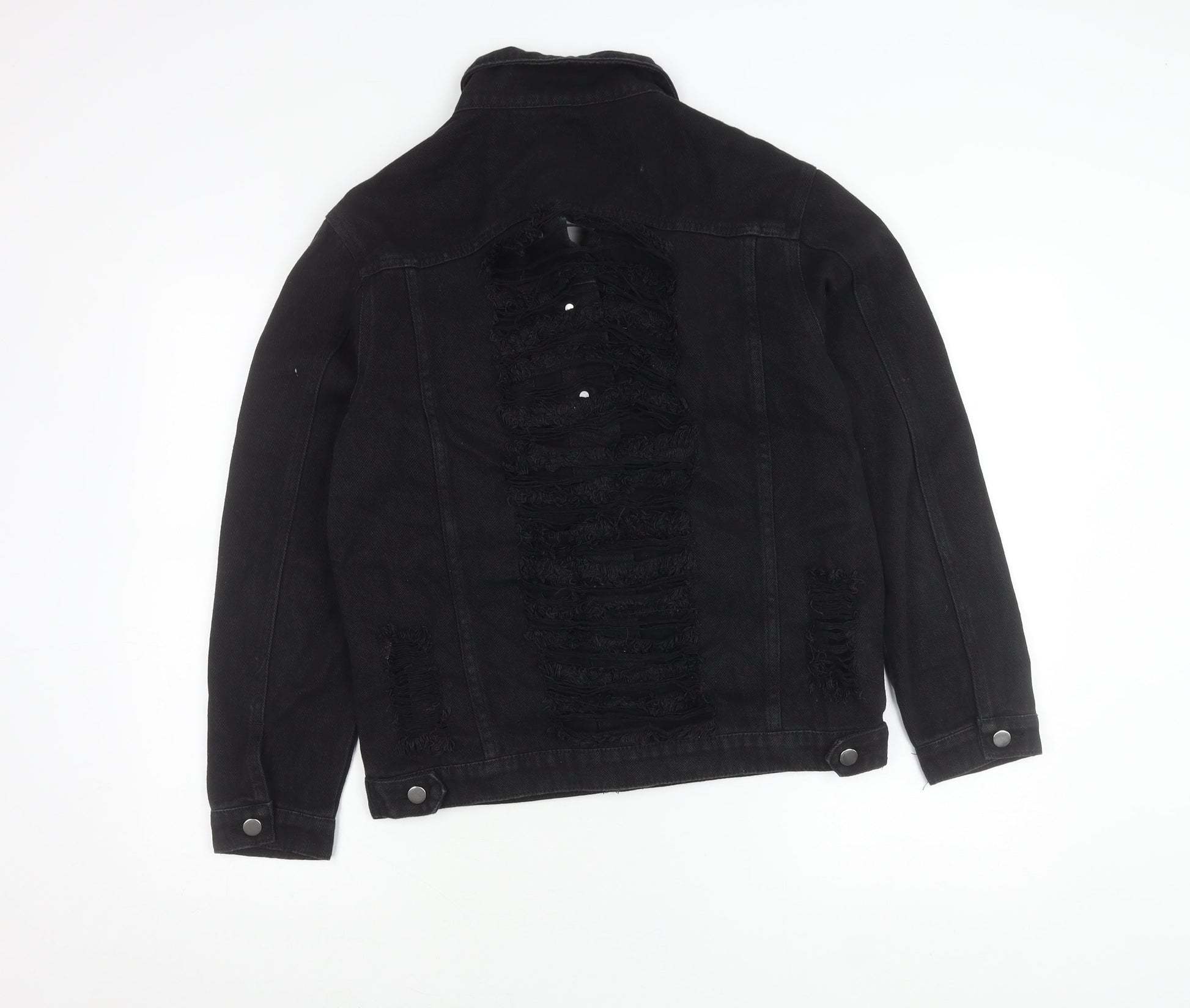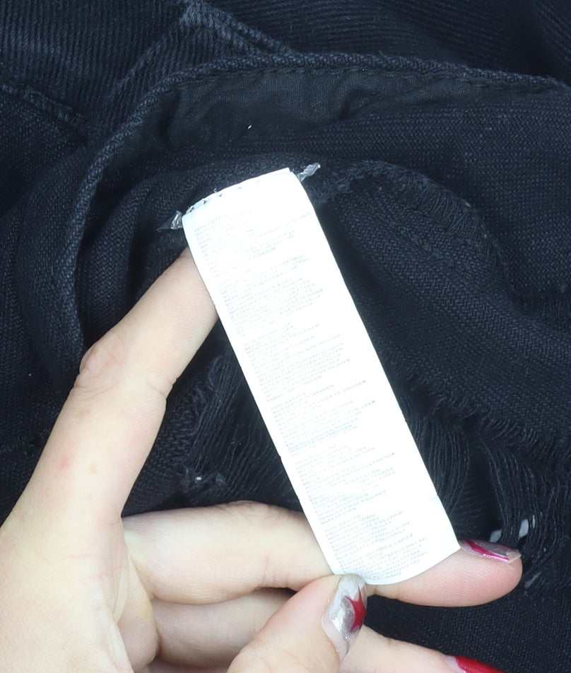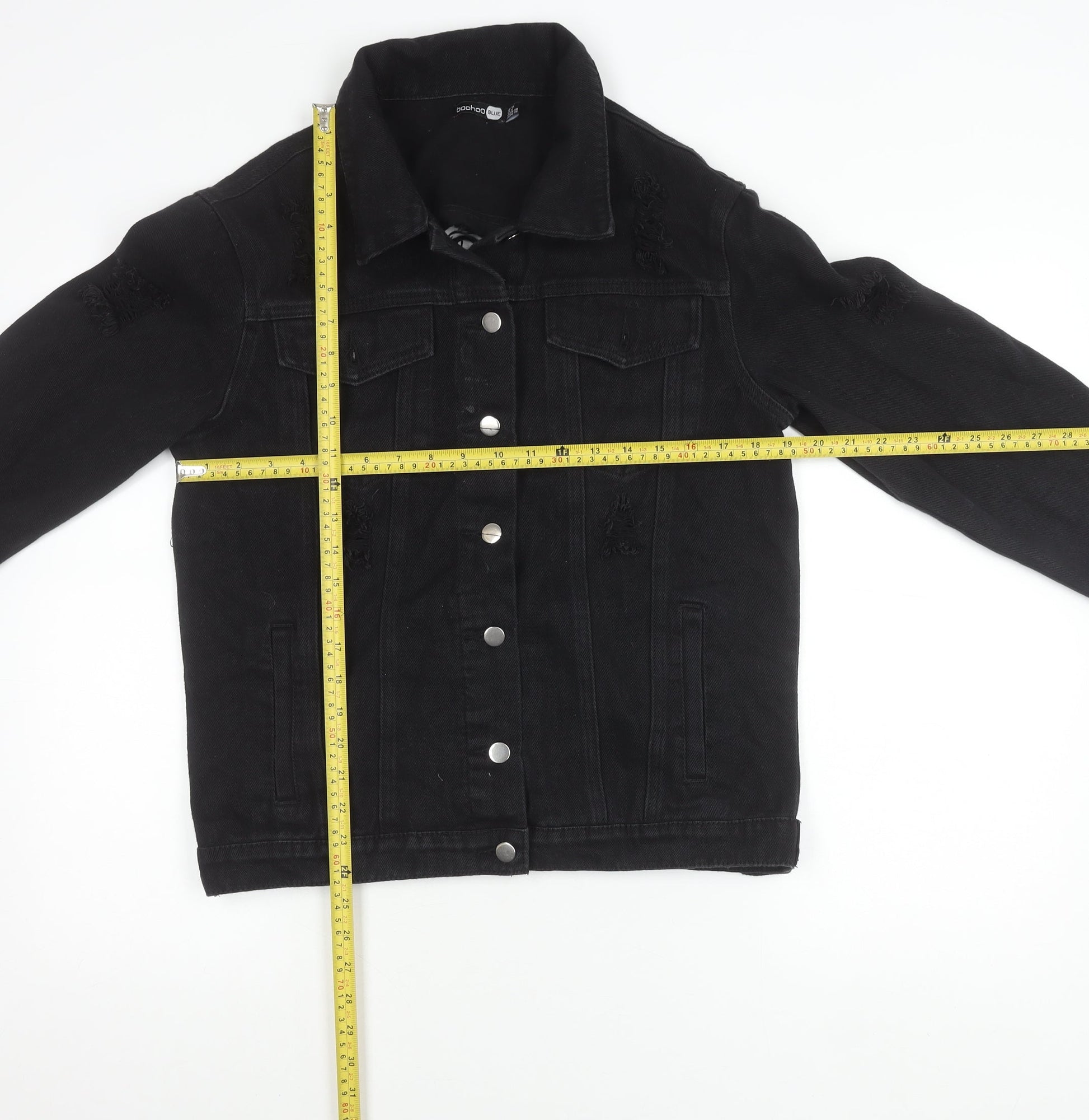 Boohoo Women Black Size 10 Denim Jacket Distressed Button Casual